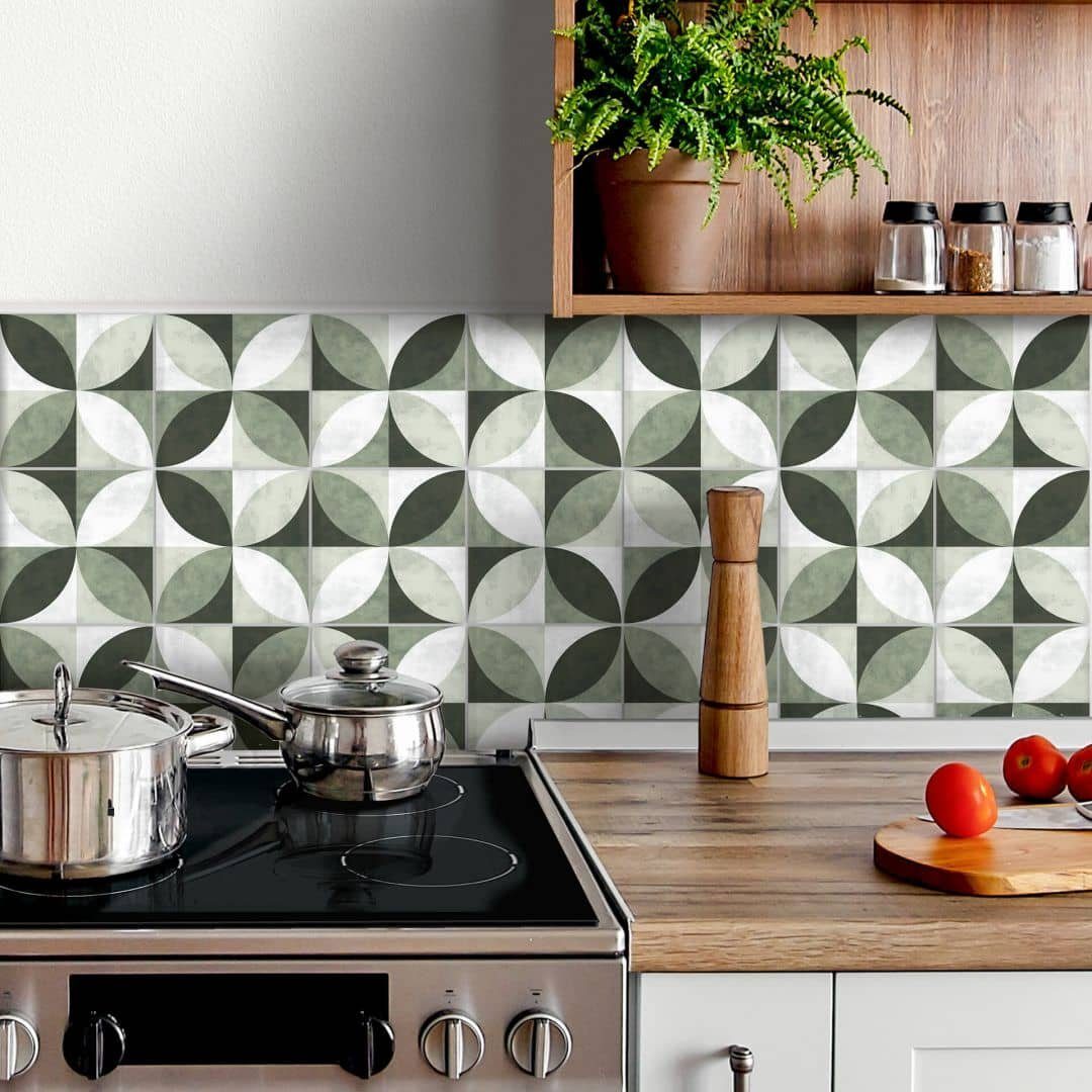 Fliesenaufkleber Flower Pattern, abstrakt, vintage, grün, selbstklebend, 12er Set