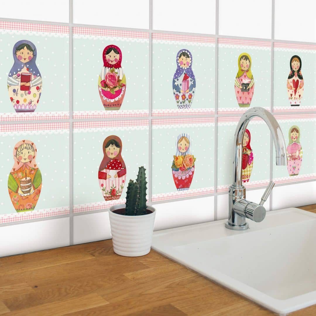 Fliesenaufkleber Klebefliese Set selbstklebend Matroschka Leffler Retro Kinder