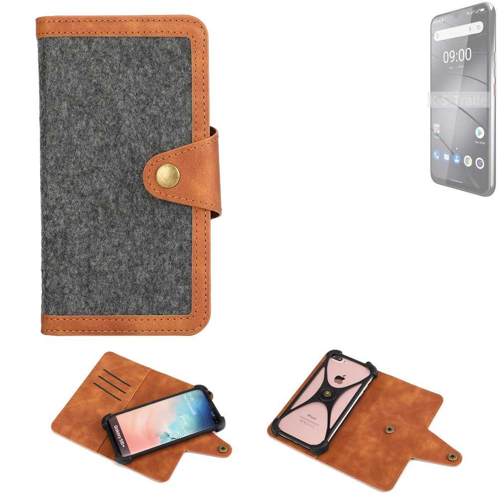 K-S-Trade Handyhülle für Gigaset GS5 Pro SE, Schutzhülle Handyhülle Filz Hülle Kunst-Leder dunkelgrau braun