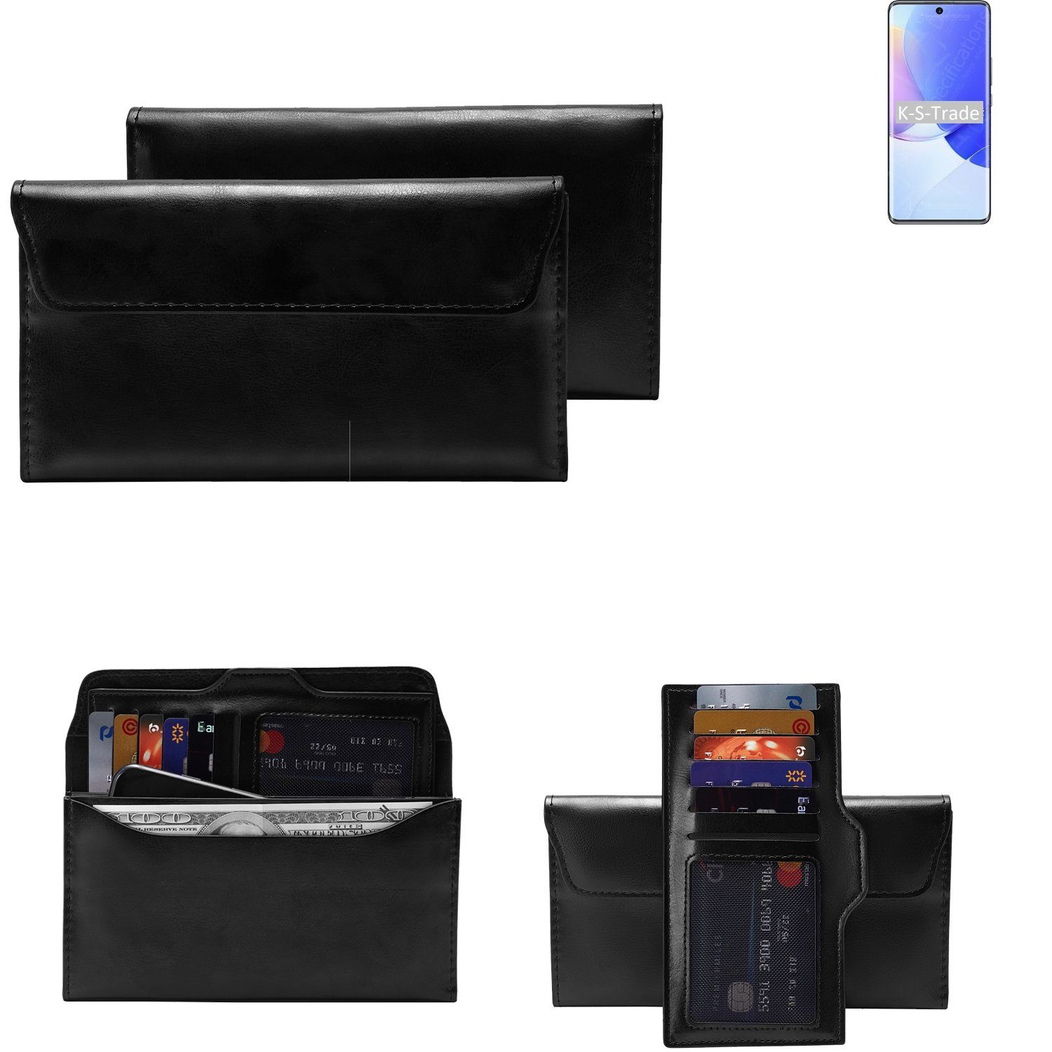 - Aussehen: Die Schutzhülle für Smartphones ist aus schwarzem Kunstleder gefertigt, die Smartphone Hülle ist zeitlos und elegantKompatible Geräte | Huawei nova 9 |