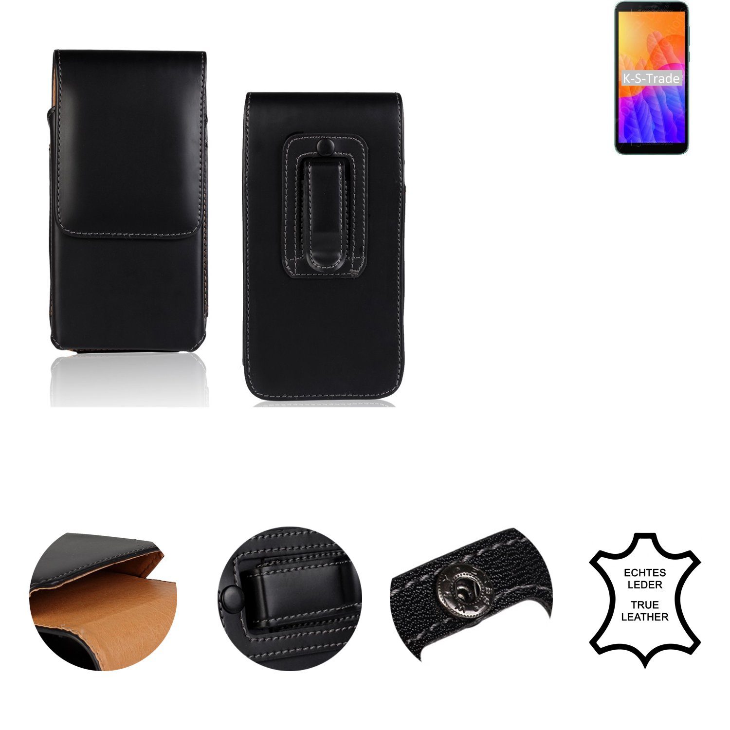 • PRAKTISCH & FUNKTIONAL: Halten Sie Ihr Handy immer griffbereit. Unseren Leder-Holster in schlichtem und eleganten schwarz bringen Sie einfach am Gürtel oder direkt an der Hose an. Mit nur einem Handgriff verstauen Sie Ihr Smartphone in der Gürteltasche oder holen es heraus.Kompatible Geräte | Huawei Y5p |