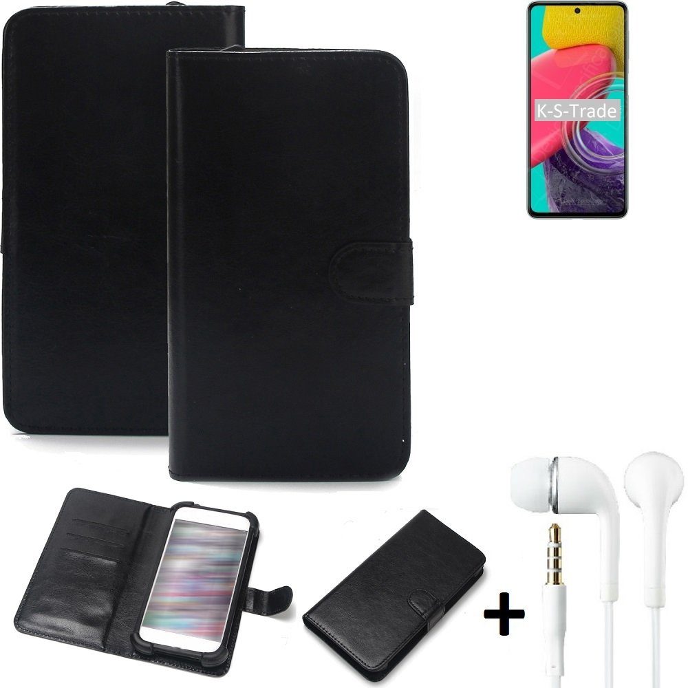 - Schutzhülle mit Bumper: Das Telefon wird mit einem herausnehmbaren Bumper in der Handytascheder gehalten. Все Anschlüsse Knöpfe sind bei diesem Walletcase freiKompatible Geräte | Samsung Galaxy M53 5G |