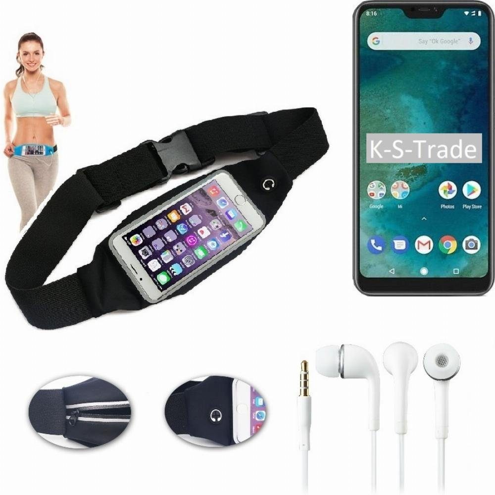 Besondere Merkmale | Bauchtasche Gürteltasche schwarz + Kopfhörer. Sport Running |