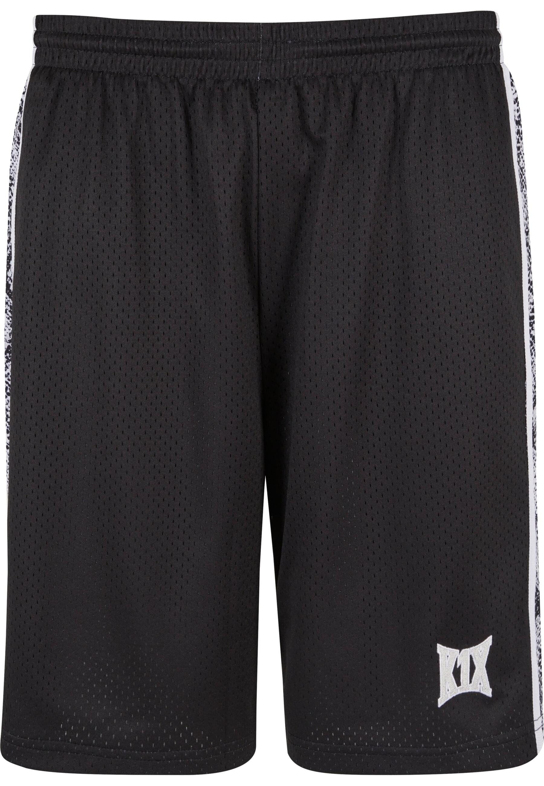 Mesh Shorts für den Alltag und sportliche Einsätze: Die locker geschnittene Short mit Low-Rise-Schnitt bietet Bewegungsfreiheit und eine entspannte Silhouette, ideal als relaxed fit Alltagsschicht. Aus leichtem Polyester-Mesh gefertigt vermittelt sie atmungsaktive Haptik und schnellen Feuchtigkeitstransport, während der elastische Bund Komfort und sicheren Sitz garantiert. Seitliche Einsätze mit gemustertem Streifen und ein deutlich sichtbar platzierter Logodruck am Bein sorgen für sportliche Details, dazu fällt die Длина bis knapp übers Knie und schafft lässige Proportionen. Schlicht konstruiert punktet die Short mit unkompliziertem Handling und klarer Funktionalität, gut kombinierbar für Training oder Freizeit.