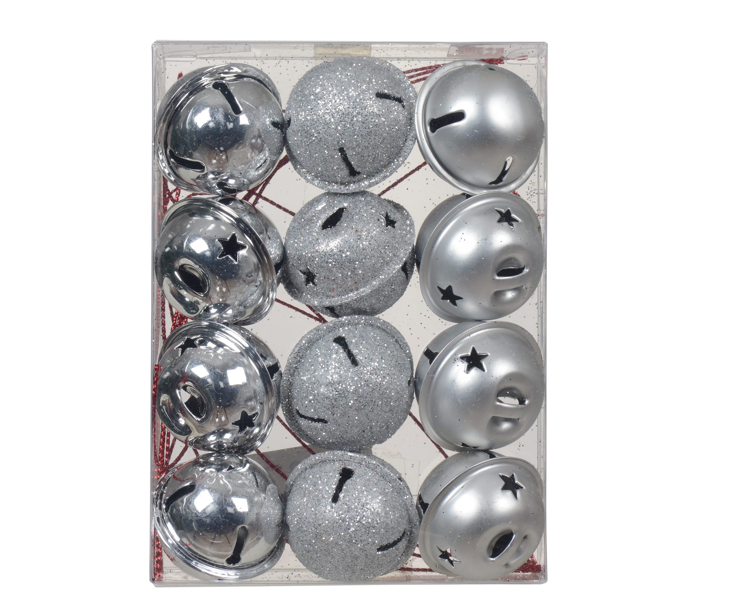 PRODUKT: kleine Glocken Anhänger / MATERIAL: Metall - Eisen / GRÖSSE: 8 x 4 cm - 4 x 5cm - 2 x 6 cm / INHALT: 12 Glocken - 4 x matt, 4 x glänzend, 4 x Glitzer / FARBE: silber