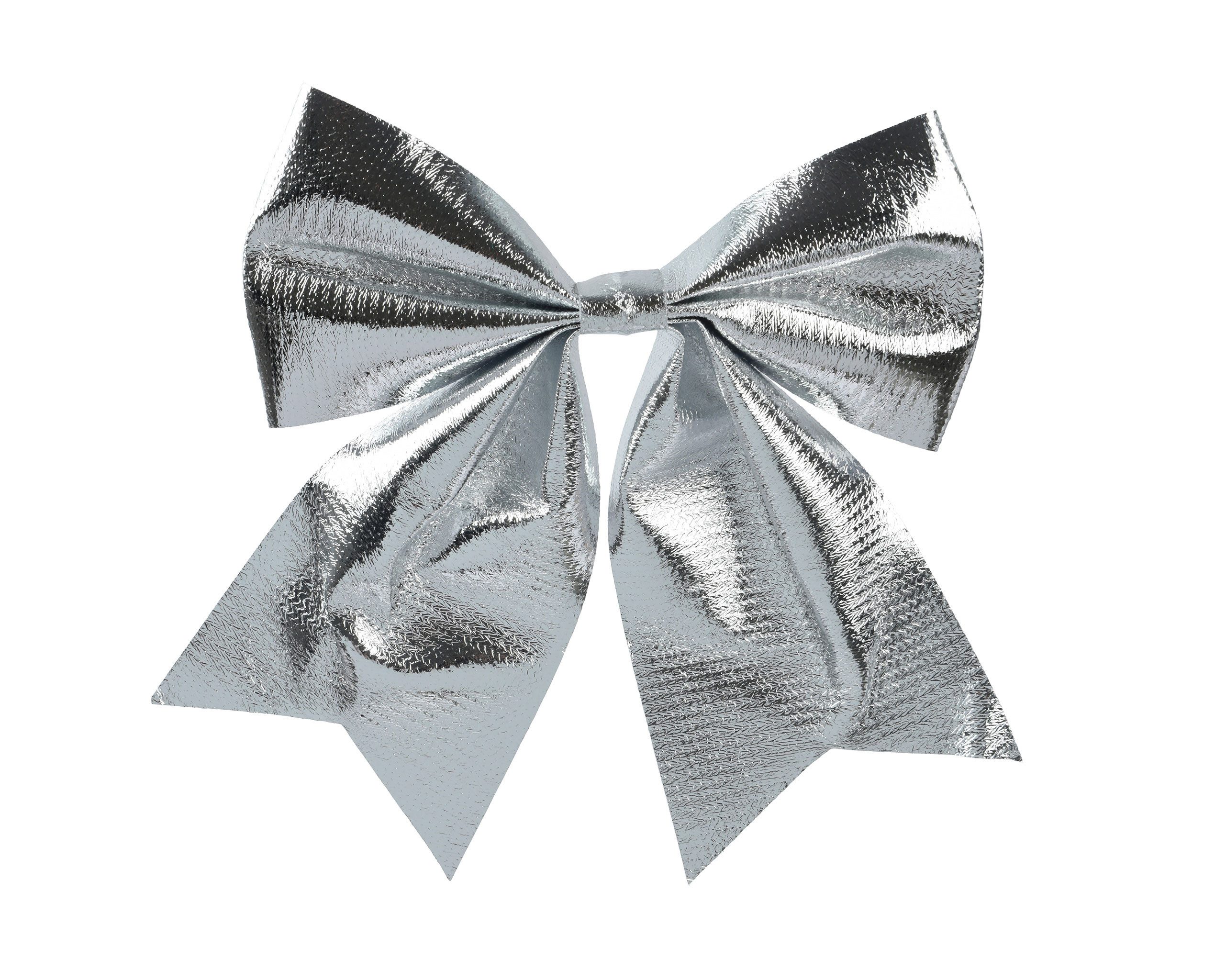 PRODUKT: Schleife / MATERIAL: Textil - Stoff, 100% Polyester / FARBE: silber metallic / GRÖSSE: ca. 20 x 24 x 1 cm