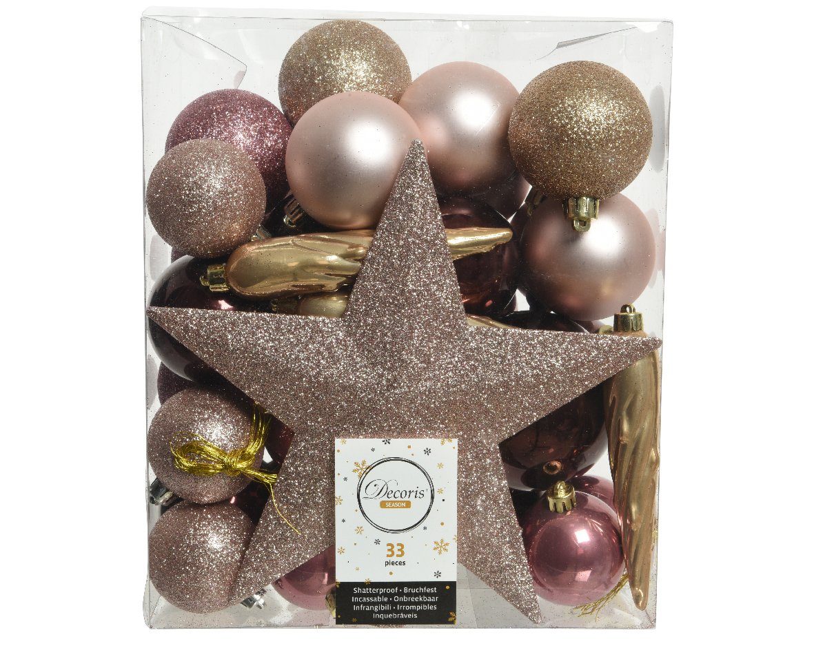 Setzen Sie Ihren Christbaum mit diesem hübschen Weihnachtsbaum - Deko Set aus Weihnachtsbaumkugeln und Baumspitze in Szene. Als klassischer Christbaumschmuck lassen sich diese bruchsicheren Weihnachtskugeln hervorragend mit vielen Christbaumanhänger, Figuren und Weihnachtsschmuck kombinieren. Doch nicht nur als Weihnachtsbaumschmuck eignen sich die Weihnachtsanhänger. Als Weihnachtsdeko verschönern die Baumkugeln den Adventskranz, Türkranz oder die Festtagstafel. Die Tannenbaumspitze kann auf einem Ständer als Tischdeko oder Fensterdeko verwendet werden.