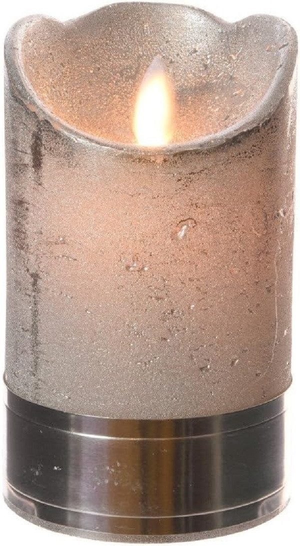 Kaemingk LED Windlicht LED Wachskerze Batt inn. Timer ca.7.5x12.5cm. Silber