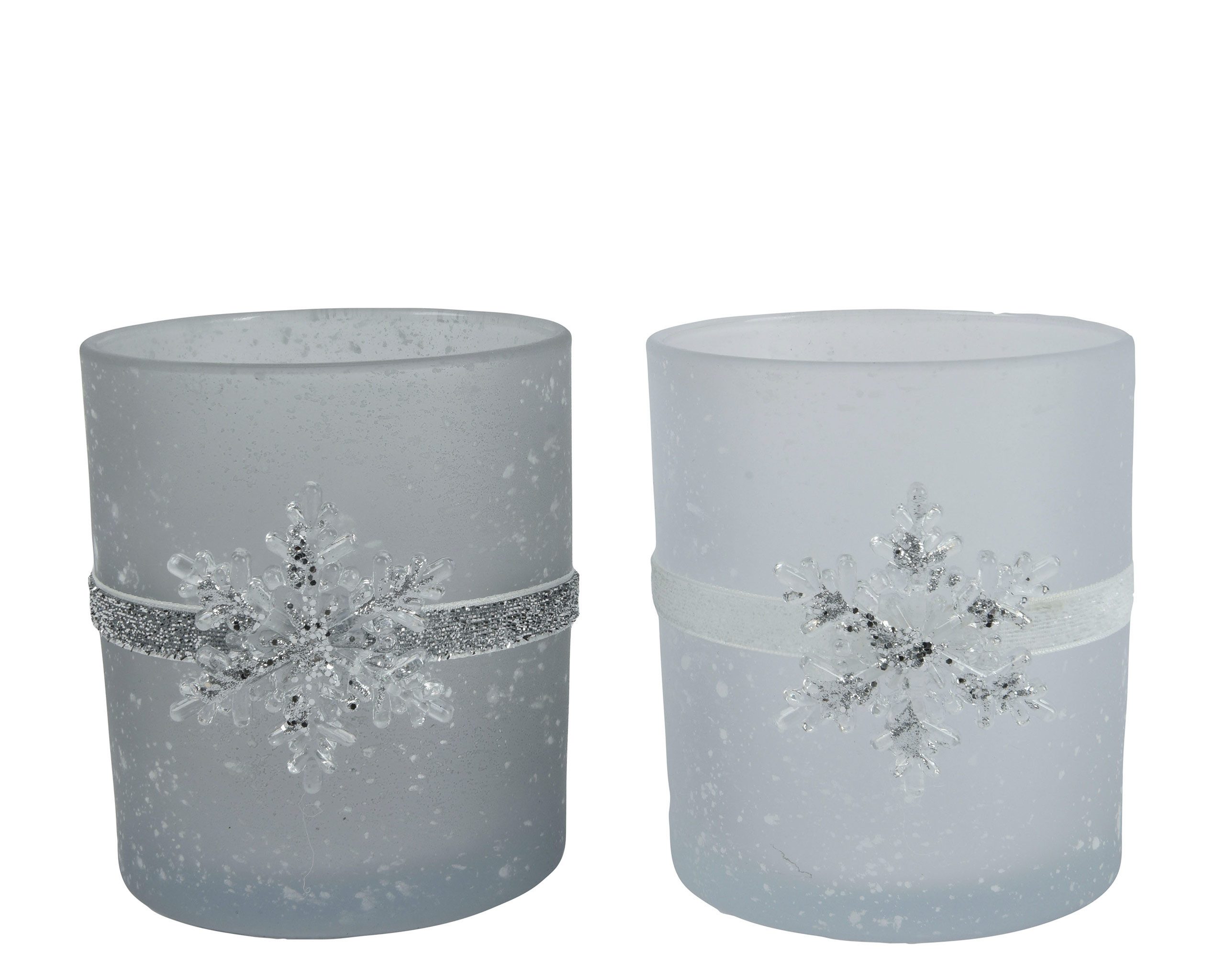 DEKORATIVE WINDLICHTER: Dieses Glas, für ein Teelicht oder kleine Kerzen ist mit einer Schneeflocke am Glitzerband dekoriert. Ein wunderschönes Deko Accessoire für den Winter und
