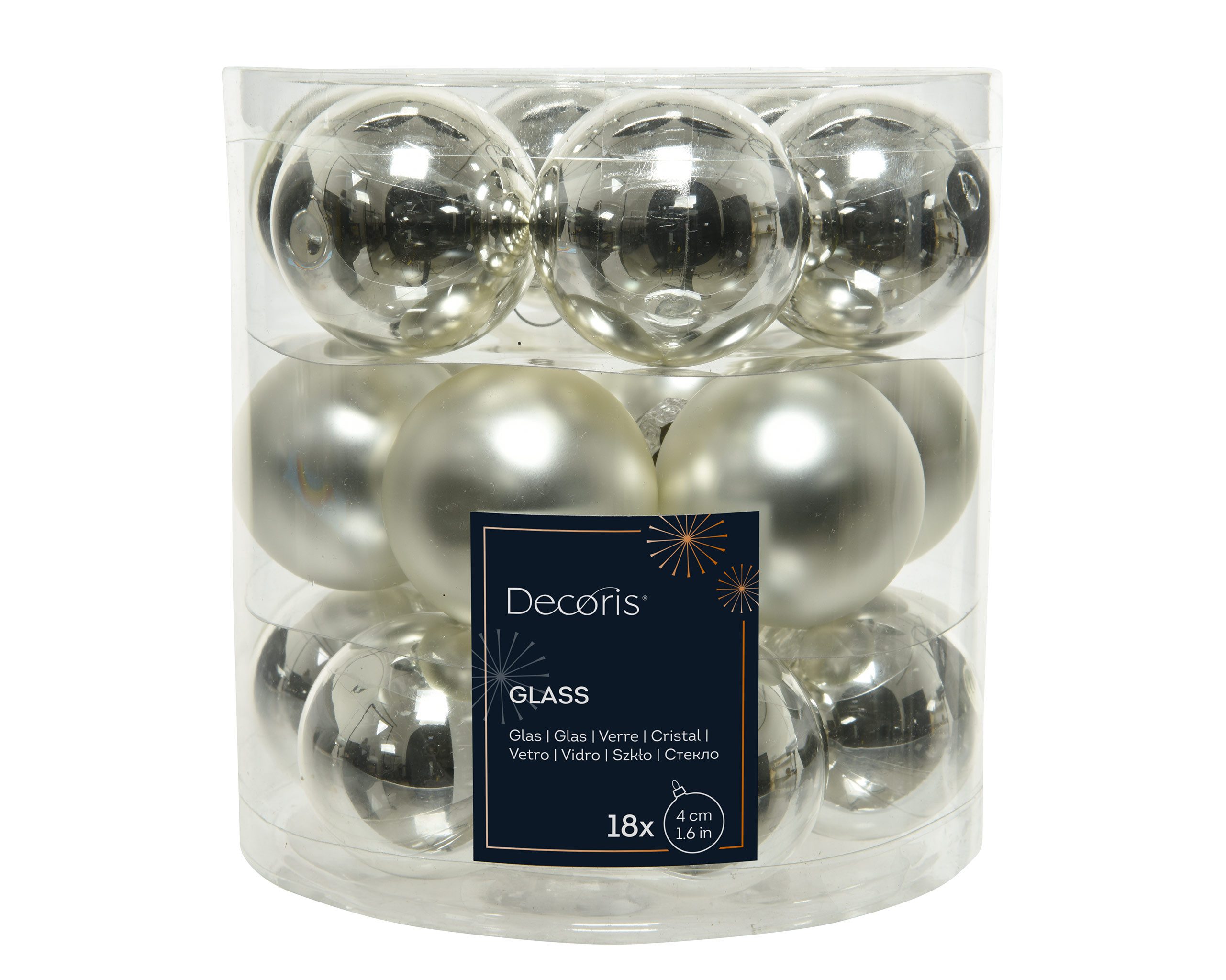 Christbaumkugeln / Weihnachtskugeln / Weihnachtsbaumkugeln Material: Glas - Durchmesser: ca. 4 cm - Packungsinhalt: 18 Weihnachtskugeln - Farbe: silber einfarbige kleine Weihnachtsbaumkugeln aus echtem Glas, maschinelle Herstellung, matt und glänzend gemischt Setzen Sie Ihren Weihnachtsbaum mit diesen kleinen Weihnachtskugeln in Szene. Der klassische Christbaumschmuck lässt sich beliebig mit anderen Weihnachtskugeln kombinieren. Doch nicht nur als Weihnachtsbaumschmuck eignen sich die Mini Christbaumkugeln, sondern auch als Dekokugeln. Sie verschönern den Adventskranz oder die Festtagstafel. Die Farben können aufgrund von unterschiedlichen Monitor Einstellungen vom Foto leicht abweichen