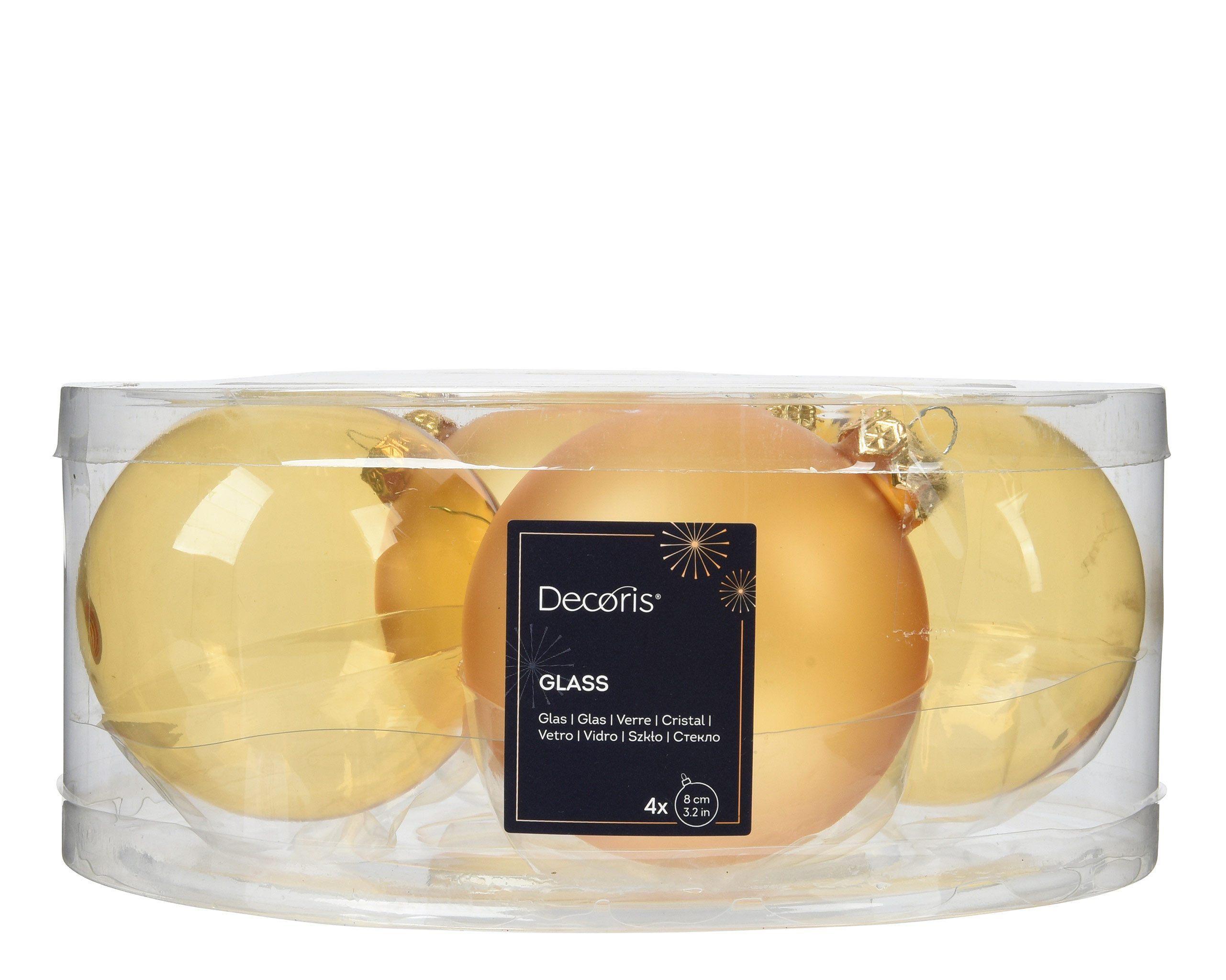 PRODUKT: Große Weihnachtskugeln / DURCHMESSER: ca. 8 cm / MATERIAL: Glas / Inhalt: 4 Kugeln / Farbton: hellgold - gold