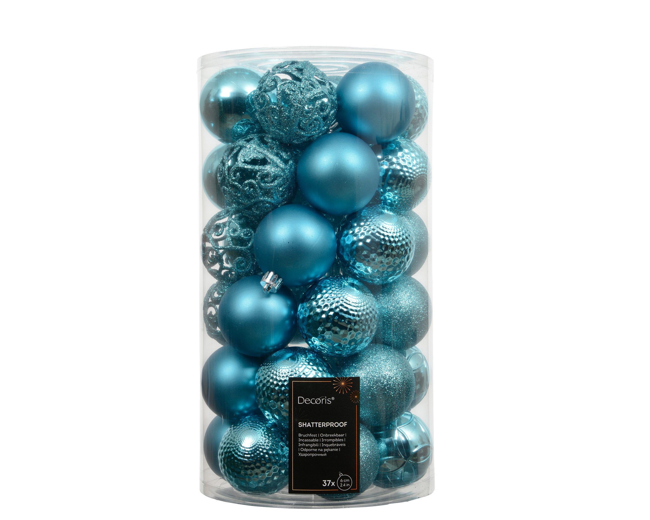 Christbaumkugeln / Weihnachtskugeln / Weihnachtsbaumkugeln mit Muster und Ornamenten Material: Kunststoff – Plastik - Durchmesser: ca. 6 cm - Packungsinhalt: 37 Kugeln - Farbton: hellblau - türkisblau - meeresblau - Christbaumkugeln aus Kunststoff, bruchsicher - matt, glänzend & mit Glitzer gemischt Setzen Sie Ihren Christbaum mit diesen bezaubernden Weihnachtsbaumkugeln in Szene. Die Baumkugeln im praktischen 37er Set überzeugen mit einer Mischung aus matten, glänzenden und glitzernden Oberflächen und verleihen jeder Weihnachtsdekoration eine elegante Note. Ob klassisch am Tannenbaum, dekorativ in Schalen oder festlich als Tischdeko – diese Kugeln sind vielseitig einsetzbar. Die Kunststoffkugeln sind eine sichere und langlebige Alternative zu Glaskugeln. Sie sind bruchsicher und daher ideal geeignet für Familien mit Kindern und Haustieren. Auch für die Verwendung im Außenbereich sind sie dank ihrer robusten Verarbeitung eine hervorragende Wahl. Die Farbkombination bringt Wärme und Tiefe in Ihre Weihnachtsdeko und lässt sich wunderbar mit Silber, Weiß oder Naturtönen kombinieren. Ob traditionell, modern oder glamourös – diese Kugeln sind vielseitig kombinierbar und setzen festliche Akzente. Verwenden Sie die Kugeln zur Dekoration Ihres Weihnachtsbaums, als Adventskranzschmuck oder für kreative Bastelideen. Auch als Geschenk zu Weihnachten oder zur Adventszeit sind sie bestens geeignet. Figur & Form: Kugel, kugelförmig, rund - Stil & Aufmachung: gemischt – matt, glänzend & glitzernd - Farbgruppe: blau - türkis