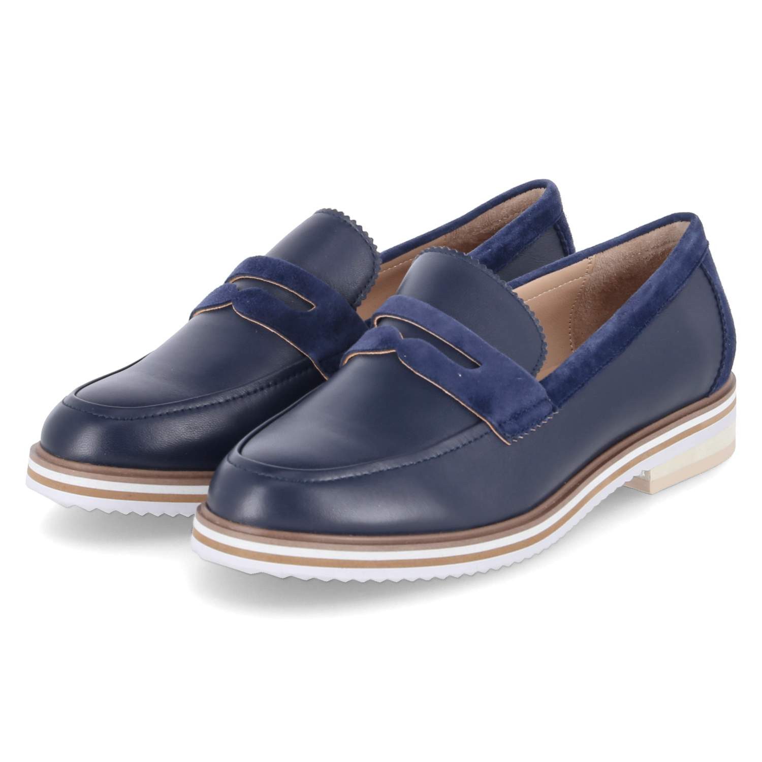 Die Kaerlek Damen Slipper aus dunkelblauem Leder-Synthetik-Mix überzeugen mit einem klassischen Design und hohem Tragekomfort. Der elegante Zierriemen verleiht dem Schuh eine stilvolle Note, während die verstärkte Ferse für zusätzliche Stabilität sorgt. Der gestreifte Sohlenrahmen setzt einen modischen Akzent und macht das Design besonders ansprechend. Die gepolsterte Decksohle bietet ein angenehmes Laufgefühl, und die flexible, rutschhemmende Laufsohle gewährleistet sicheren Halt. Diese Loafer sind eine perfekte Wahl für stilvolle und bequeme Alltagslooks.