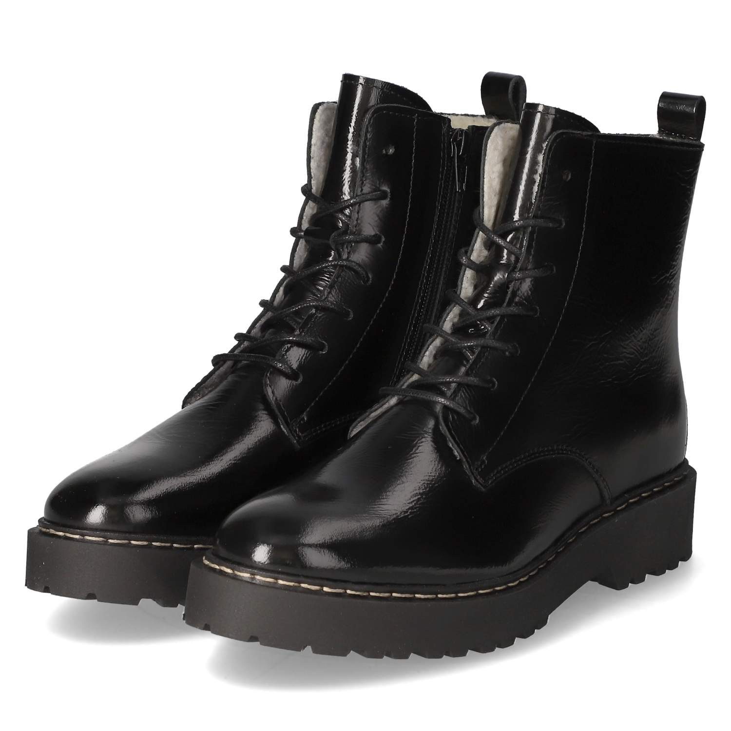 Die Kaerlek Damen Schnürstiefeletten in Schwarz aus Lackleder bieten eine stilvolle und praktische Lösung für modische Auftritte bei kälterem Wetter. Diese Stiefeletten zeichnen sich durch ihr glänzendes Lackleder aus, das jedem Outfit einen eleganten und auffälligen Touch verleiht.