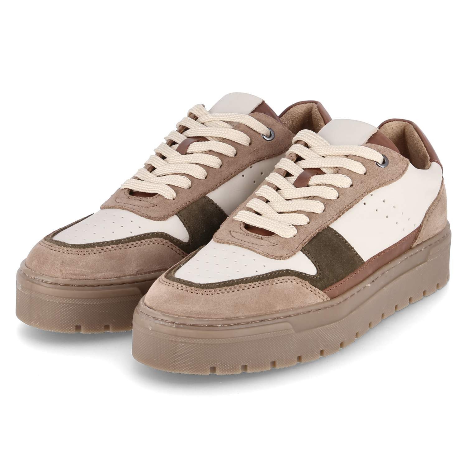 Die Kaerlek Herren Low Sneaker aus einem braun-mehrfarbigen Leder-Mix überzeugen durch ihre gut kombinierbaren Pastelltöne, die dem Schuh eine frische und vielseitige Optik verleihen. Die klassische Schnürung sorgt für eine optimale Passform, während der verstärkte Zehen- und Fersenbereich zusätzlichen Schutz und Stabilität bietet.