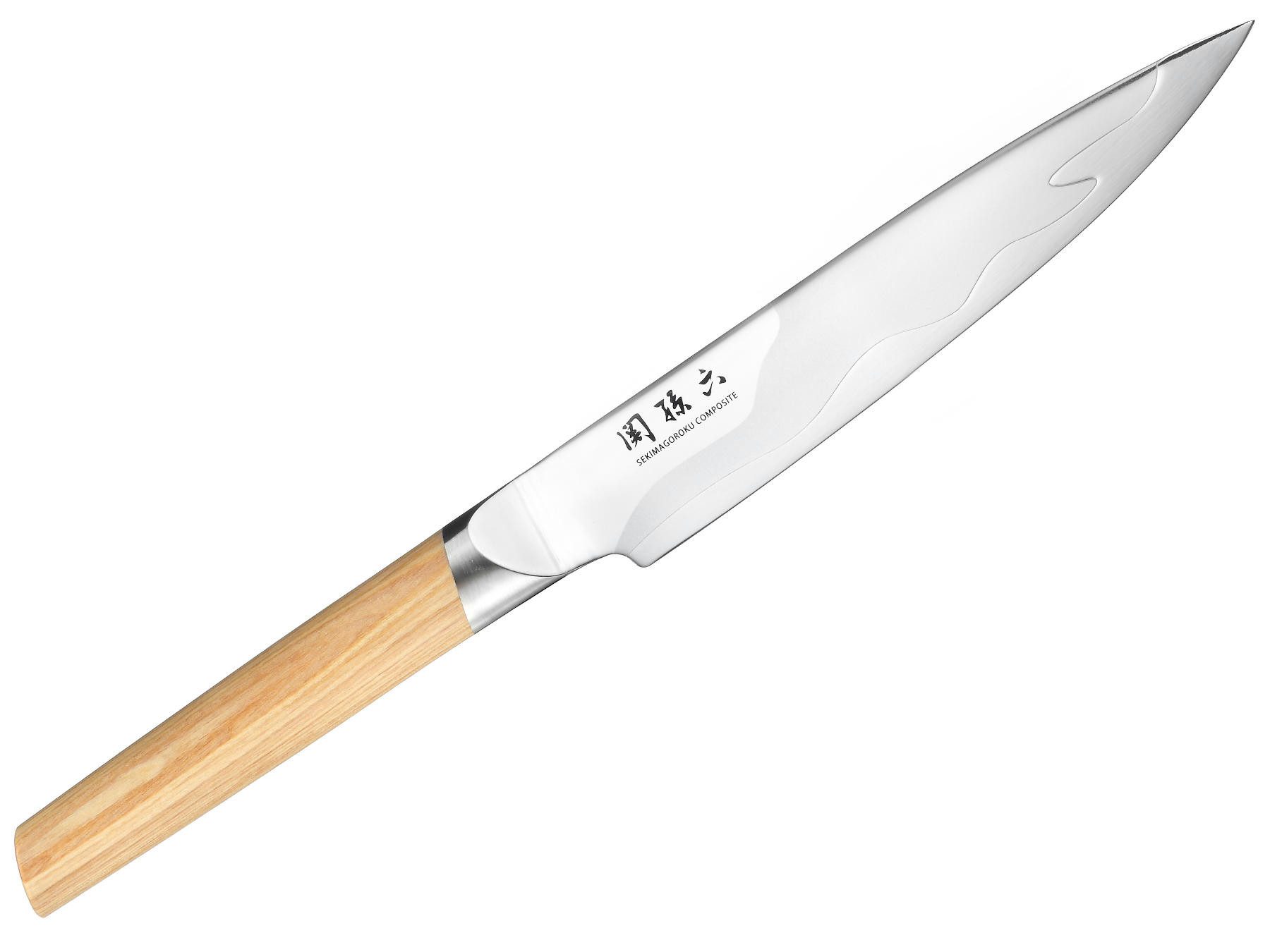 Das KAI Seki Magoroku Composite MGC-0468 Fleischmesser verbindet außergewöhnliche Qualität und Design. Die 18 cm lange Klinge besteht aus VG-MAX- und SUS42012-Stahl und ist durch eine markante Kupferlinie getrennt, die nicht nur ein optisches Highlight darstellt, sondern auch die Festigkeit und Präzision der Klinge erhöht. Der Griff aus hellem Pakka-Holz ist symmetrisch und bietet dank seiner ergonomischen Form optimalen Komfort. Mit einem Gewicht von nur 130 g ist das Messer leicht und handlich, perfekt für präzises Schneiden. Die Serie umfasst acht Klingenformen und wurde 2013 mit dem reddot design award ausgezeichnet, was die Qualität und das innovative Design unterstreicht. Ideal für professionelle Köche und ambitionierte Hobbyköche, die Wert auf Präzision und Ästhetik legen.
