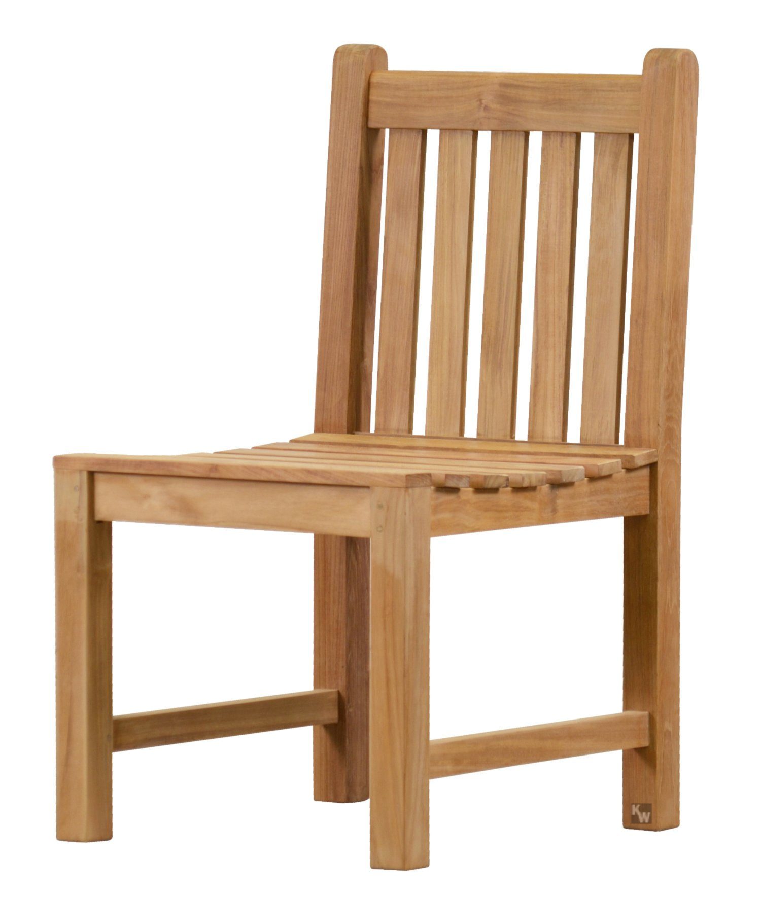 Dieser Teak-Sessel ist aus massivem Kernholz gefertigt und besonders robust konstruiert. Er besticht durch sein minimalistisches Design und passt dadurch in jeden Garten, auf die Terrasse oder den Balkon. Ein großer Vorteil liegt in den nicht vorhandenen Armlehnen, wodurch auch mehrere Sessel am Esstisch Platz finden und problemlos darunter geschoben werden können. Teakholz bietet eine außergewöhnlich hohe Wetterbeständigkeit, sodass der Teak Sessel auch ohne Pflege ganzjährig im Freien stehen kann. Die Montage erfolgt mit Hilfe von PUR-Leim, der in der Lieferung enthalten ist. Es werden keine Schrauben verwendet, sodass die Optik des Teak Gartenstuhls nicht beeinträchtigt wird und er auch langfristig stabil ist. Wir empfehlen die Kombination mit Teak-Tischen der Firma Kai Wiechmann, um ein harmonisches Gesamtbild zu schaffen.