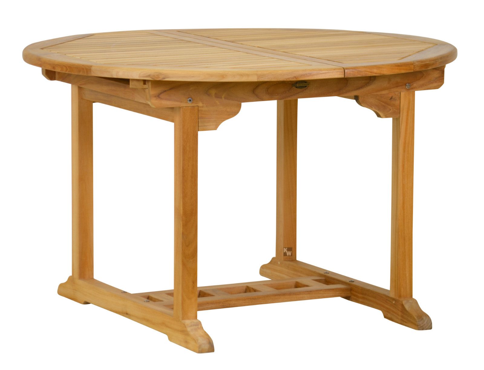 Dieser runde Teakholz Gartentisch mit Auszug ist außergewöhnlich robust und bietet eine sehr hohe Wetterfestigkeit, sodass er sich ganzjährig für alle Gärten, Terrassen, Wintergärten und Balkone eignet. Der verlängerbare Teaktisch besticht durch sein zeitloses Design und ist durch eine Querverbindung am Fuß außergewöhnlich stabil konstruiert. Durch die integrierte Zusatzplatte ist er flexibel nutzbar und bietet bequem Platz für 6-8 Personen. Die Zusatzplatte lässt sich leicht ausklappen und durch eine einfache Drehbewegung wieder unter der Tischplatte versenken, sodass sie nicht separat verstaut werden muss. Der Teak Tische zum Ausziehen wird fertig montiert geliefert.