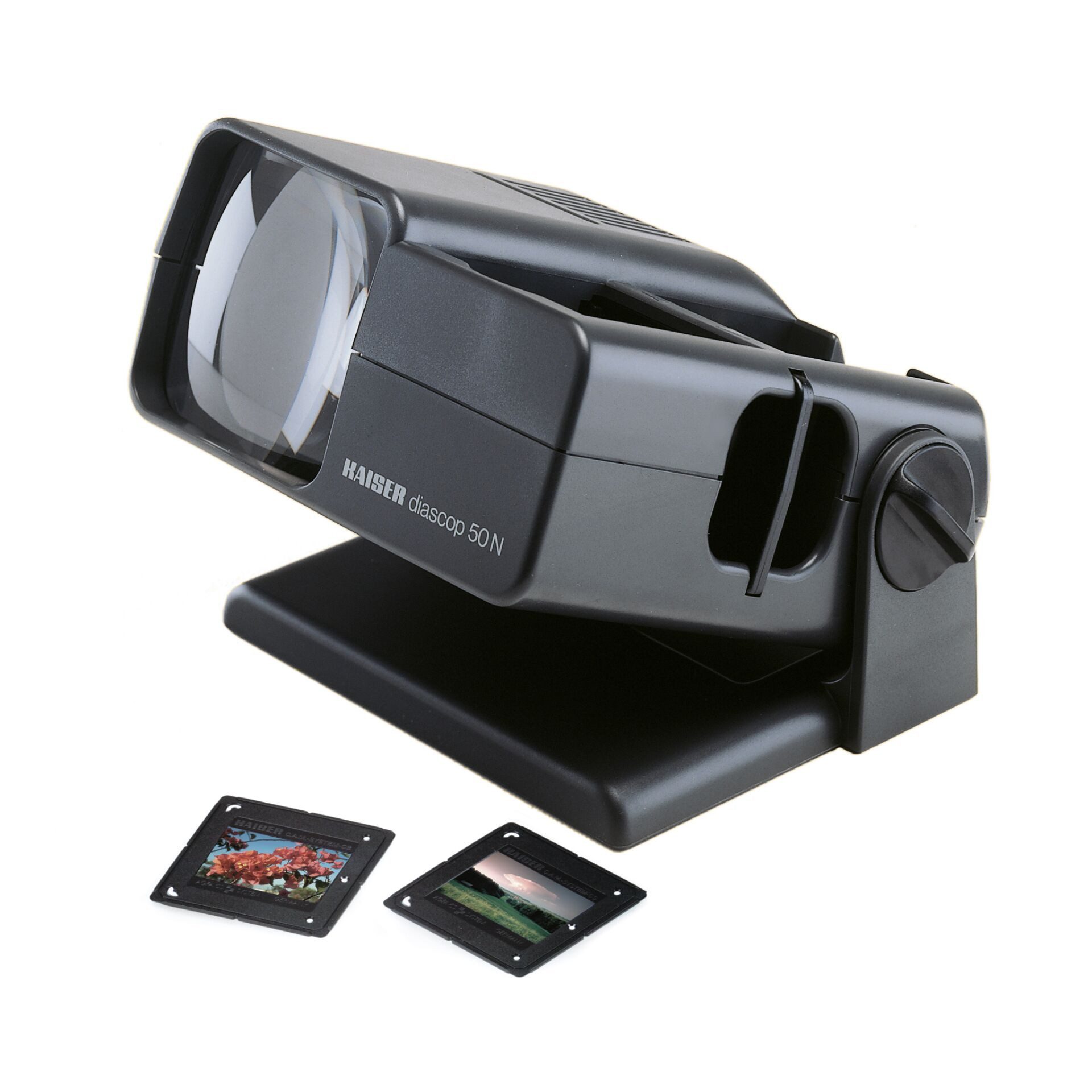 Dia-Betrachter mit 3-fach vergrößernder Doppellinse für gerahmte Dias 5x5 cm und ungeschnittenen Filmstreifen, Wechselschieber für komfortablen Diawechsel ohne störende Hellphase, Fallschacht für bis zu 40 Dias. Schwenkbares Oberteil zur Einstellung des gewünschten Betrachtungswinkels, Netzanschluss.