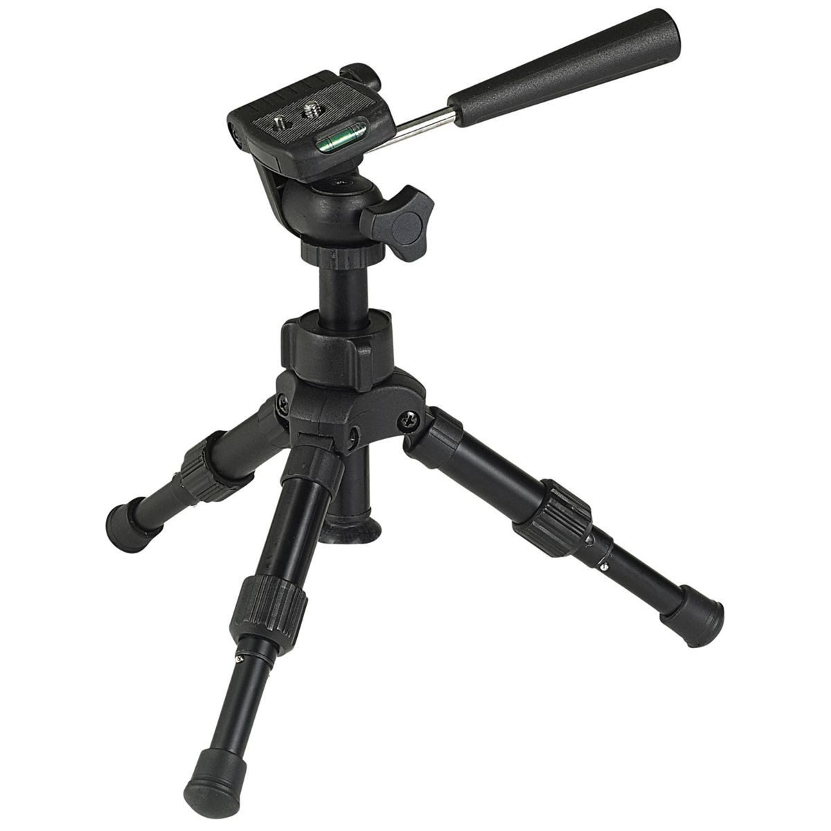 Mit zweifach ausziehbaren Teleskopbeinen und ausziehbarer Mittelsäule. Schwenk-/Neigekopf mit schwenkbarer Kamera-Montageplatte für Quer- und Hochformataufnahmen. Eingebaute Wasserwaage zur exakten Ausrichtung. Saugnapf an der Mittelsäule gibt bei geringster Stativhöhe auf ebenen und glatten Oberflächen zusätzlichen Halt.