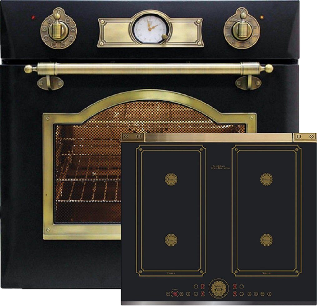 Die flachen einteiligen Kochfelder mit leicht abgeschrägten Kanten und einer Facette vorne verfügen über ein elegantes Design mit zahlreichen Art Déco Dekorelementen wie die Beschläge aus massivem Metall der Antik-Goldtönen, das Ihrer Küche einen exklusiven Stil verleiht.
