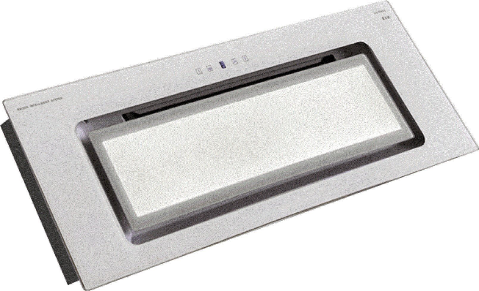 Rahmen und Innenplatte sind weiß in Weiß Glas gehalten. Ein  LED Beleuchtungsglas sorgt für optimale Beleuchtung der Kochfläche.  Die verschiedenen Funktionen der Dunstabzugshaube (Licht, Stufenregulierung und Timer ) können über die “Touch Control” Steuerung oder Fernbedienung gesteuert werden.