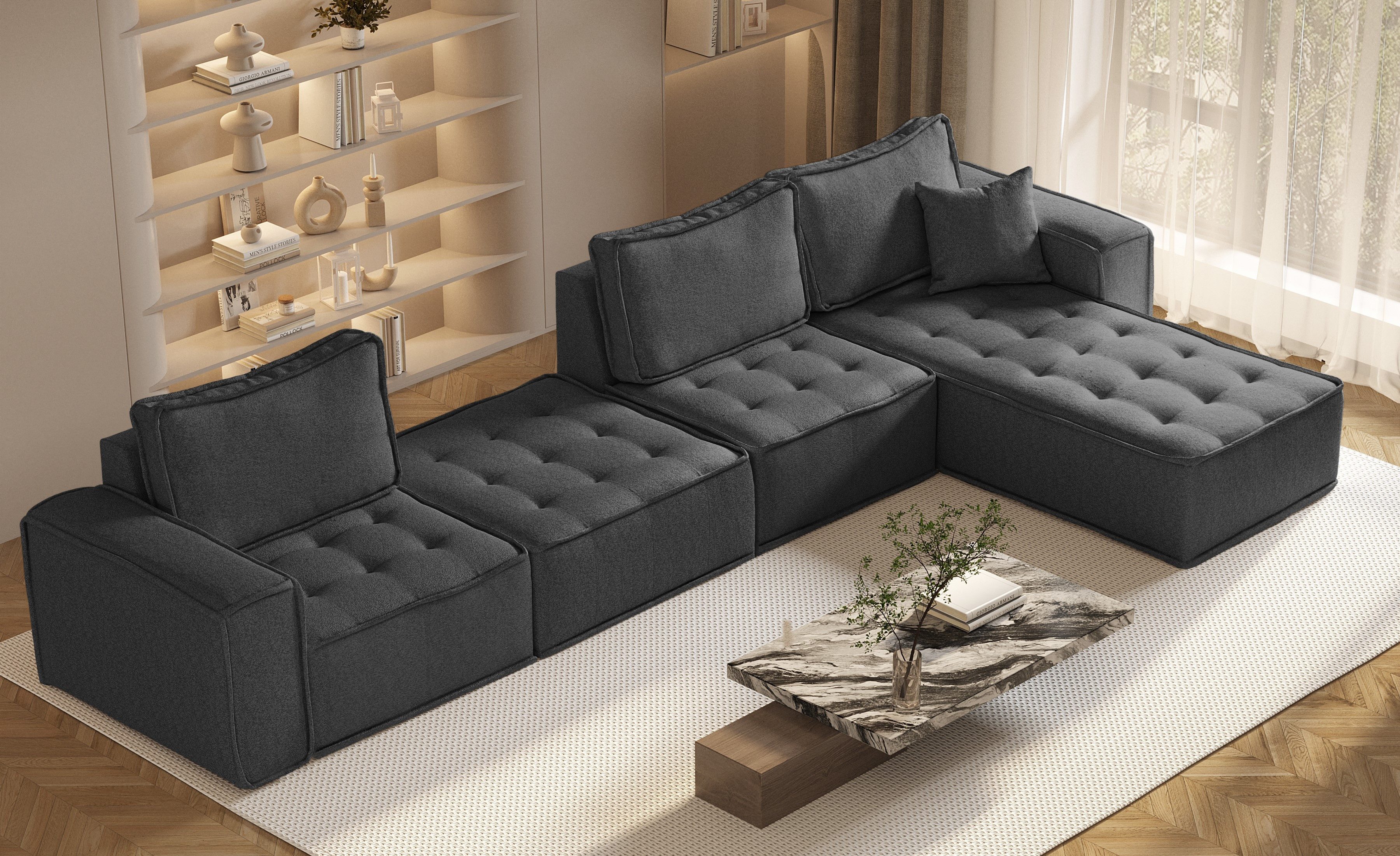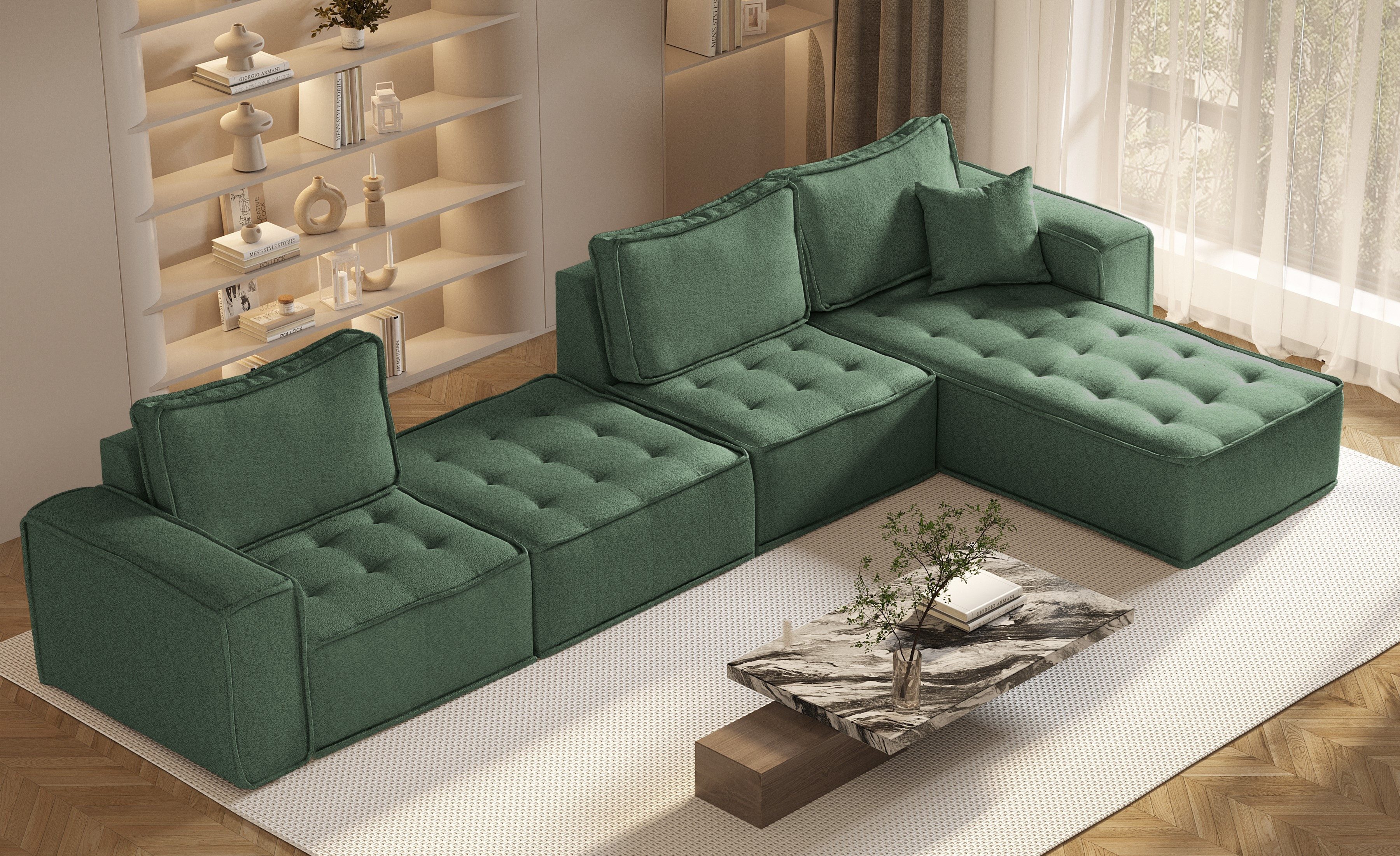 Das BohooXL Modular Corner ist ein Ecksofa mit einem sehr modernen und zeitlosen Design. Das L-förmige Ecksofa mit einem zusätzlichen Modul bietet viel Platz für Sie und Ihre Haushaltsmitglieder. Seine Besonderheit sind die gesteppten Sitze und der dicke Keder, der das Ganze umgibt. Die stilvolle, solide Form, kombiniert mit Funktionalität, passt perfekt in moderne Wohnräume. Gestalten Sie Ihr Interieur im Designer-Stil! Bohoo modular Xl ist ein Vorschlag für Polstermöbel für alle, die mehr wollen. Meisterhafte Verarbeitung und hochwertige Rohstoffe sind seine Stärken: zeitlose Funktionalität und tolle Form. Komfort und Gemütlichkeit werden durch gewellte Federn und Schaumstoff gewährleistet, die den Körper besser abfedern und einen gesunden Schlaf fördern, indem sie sich den natürlichen Kurven des Körpers anpassen. Die losen Körperstützkissen bestehen aus antiallergenen Silikonkugeln und verformungsbeständigem Schaumgranulat. Das Modul kann überall angebracht werden - Sie können die Ecke verlängern und es auch separat als Pouffe platzieren. Gestalten Sie Ihre Traumecke noch heute selbst! Von nun an wird Ihr Interieur nie mehr langweilig sein! Es ist aus hochwertigem Raven-Stoff in einer breiten Farbpalette gefertigt, so dass auch die anspruchsvollsten Geschmäcker etwas Passendes finden werden.