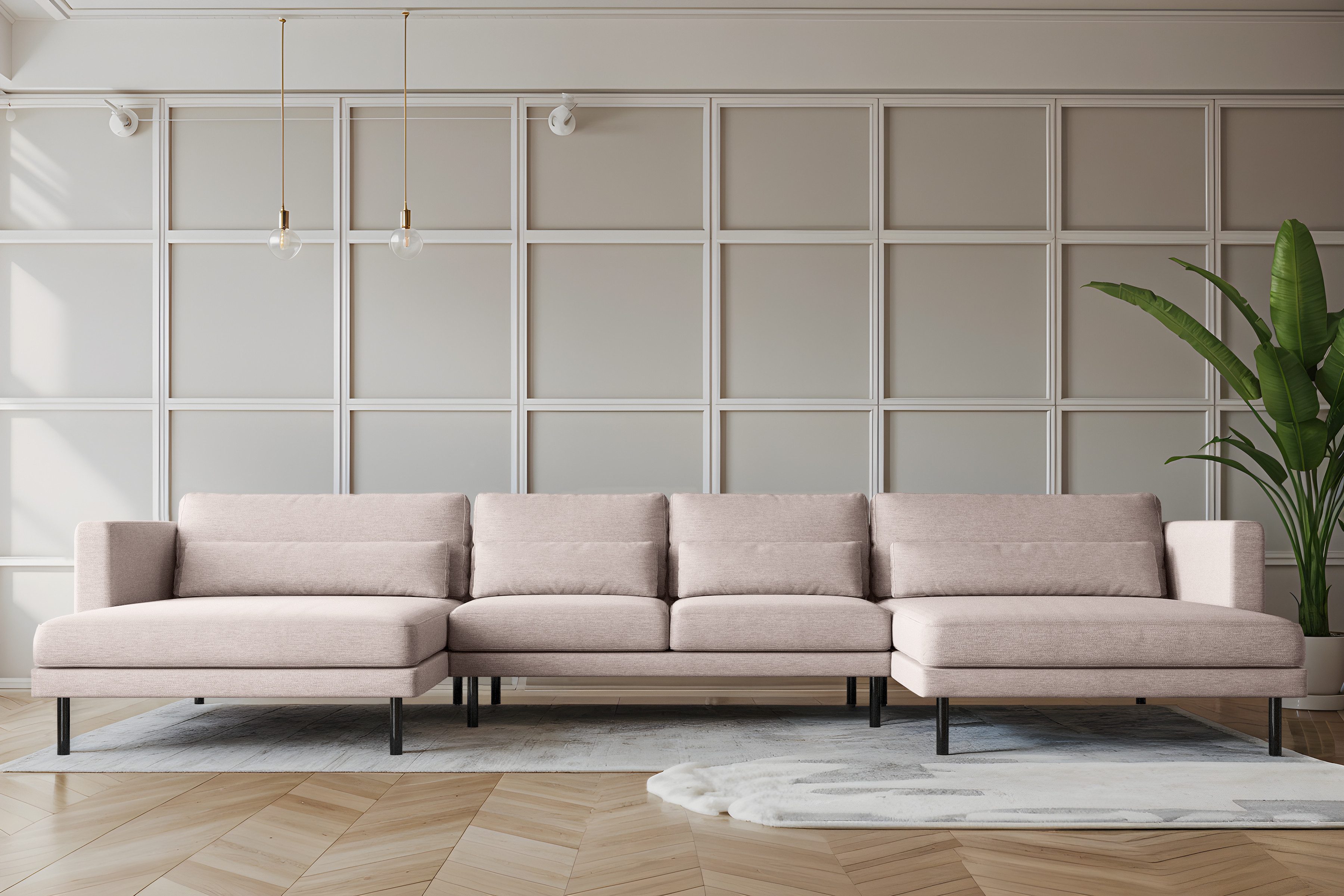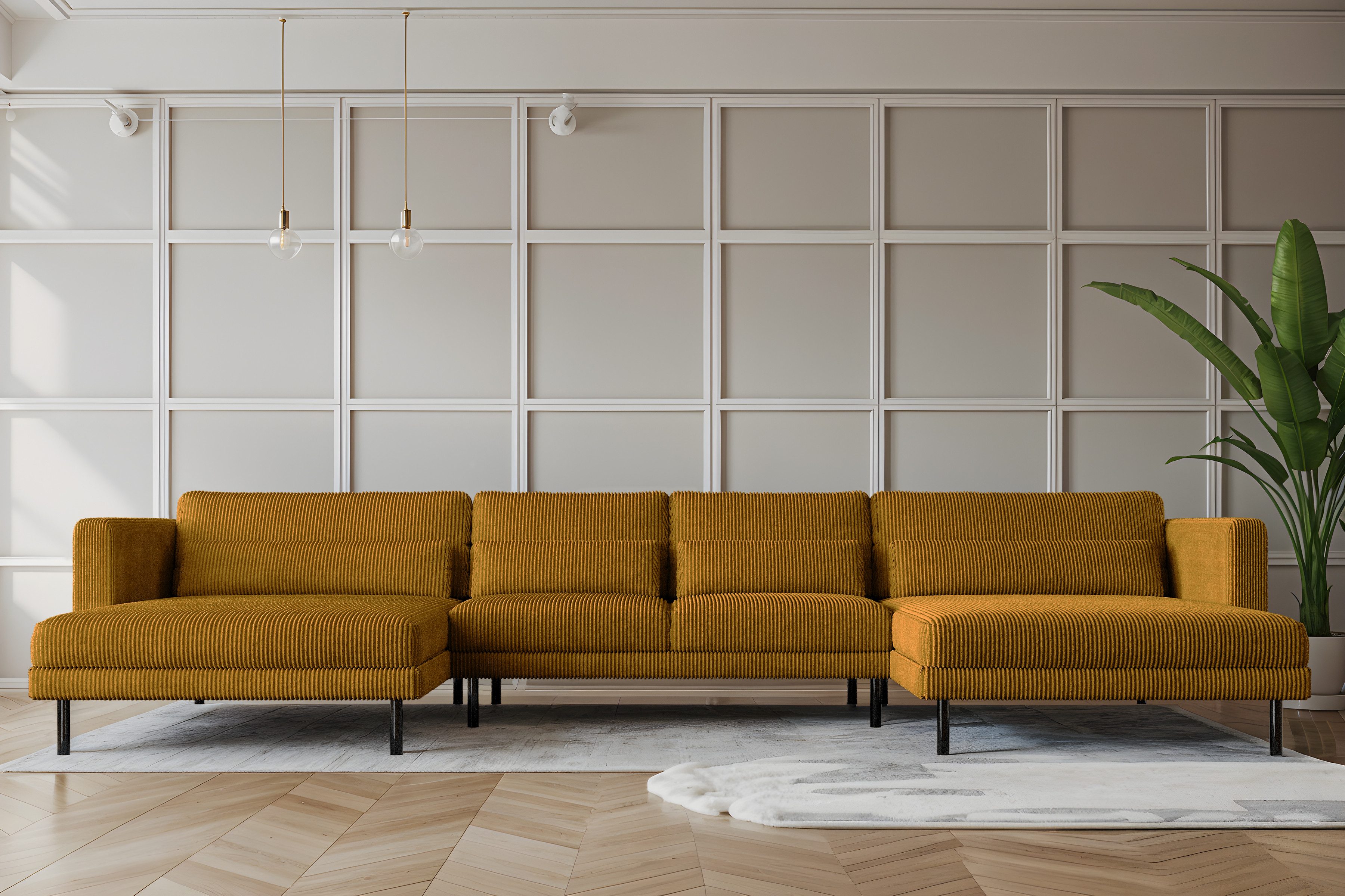 Sie suchen ein Möbelstück, das zum Mittelpunkt Ihres Wohnzimmers wird? Unser Ecksofa DANI in U-Form ist die perfekte Kombination aus moderner Form und Funktionalität. Es wurde mit Blick auf Komfort und Ästhetik entworfen und eignet sich sowohl für große als auch für gemütliche Räume. Vier großzügige Rückenkissen bieten bequemen Halt, während vier Zierkissen für eine leichte und stilvolle Note sorgen. Die schlanken Metallbeine unterstreichen das moderne Design des Möbels und verleihen ihm eine optische Leichtigkeit. Das Ecksofa hat keine Schlaffunktion und keinen Lattenrost, so dass Sie sich ganz auf seine Ästhetik und seinen Komfort im Alltag konzentrieren können. Ideal für lange Abende mit der Familie, Treffen mit Freunden oder einfach zum Entspannen nach einem langen Tag.