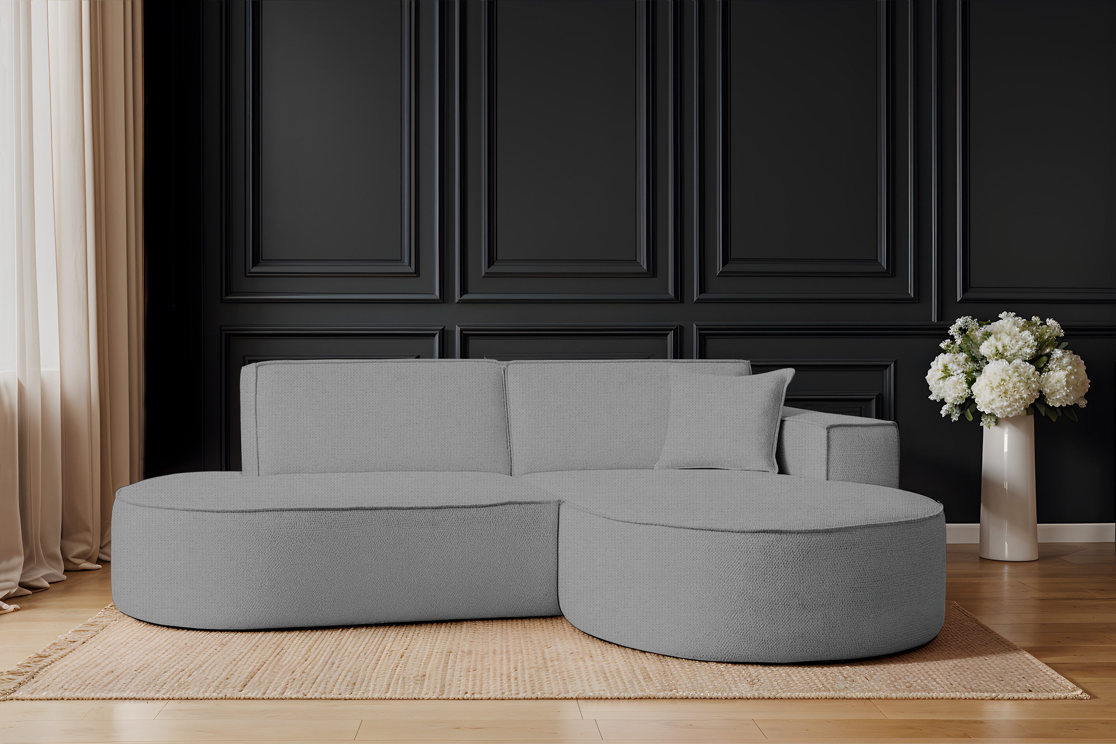Das Ecksofa Modena Studio ist eine Kombination aus modernem Design und hohem Nutzungskomfort. Die minimalistische Form und die abgerundeten Linien verleihen ihm einen einzigartigen, gemütlichen Charakter – ideal für Wohnräume im modernen, skandinavischen oder loftartigen Stil. Dank sorgfältig ausgewählter Materialien und viel Liebe zum Detail zeichnet sich dieses Sofa nicht nur durch eine elegante Optik, sondern auch durch eine hohe Langlebigkeit aus.