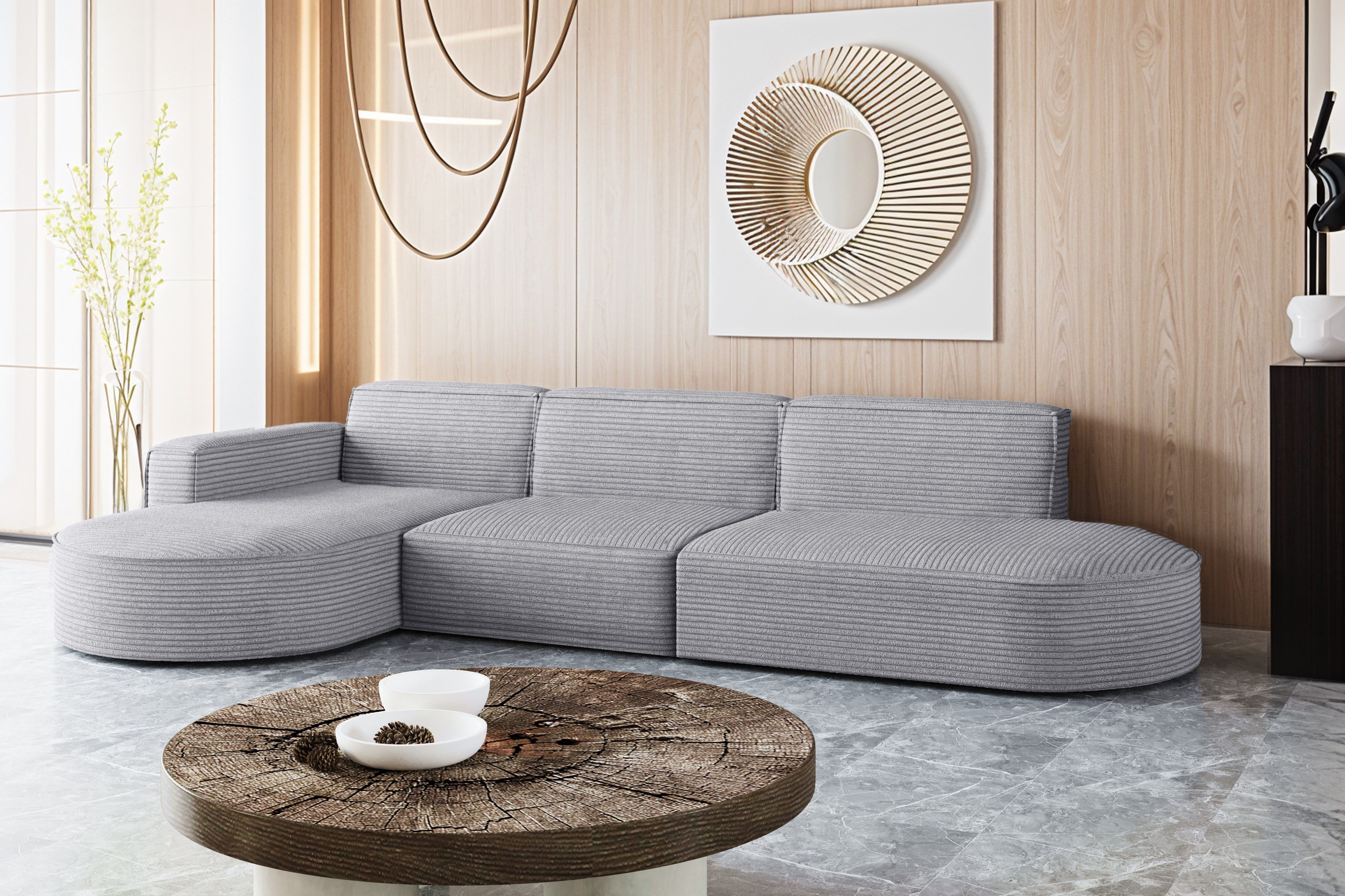 Das Designer-Ecksofa MODENA in der L-Form und einer Длина von 302 cm vereint modernes Design und Komfort auf höchstem Niveau. Dieses Sofa in L-Form bietet eine geräumige Sitzfläche und fügt sich ideal in große Wohnräume ein. Der hochwertige Stoff Poso verleiht dem Sofa eine elegante Ausstrahlung und sorgt für eine angenehme Haptik. Die klare Linienführung und die großzügigen Maße machen das Ecksofa MODENA zu einem echten Blickfang und einem komfortablen Rückzugsort für entspannte Abende oder gesellige Stunden mit Familie und Freunden.
