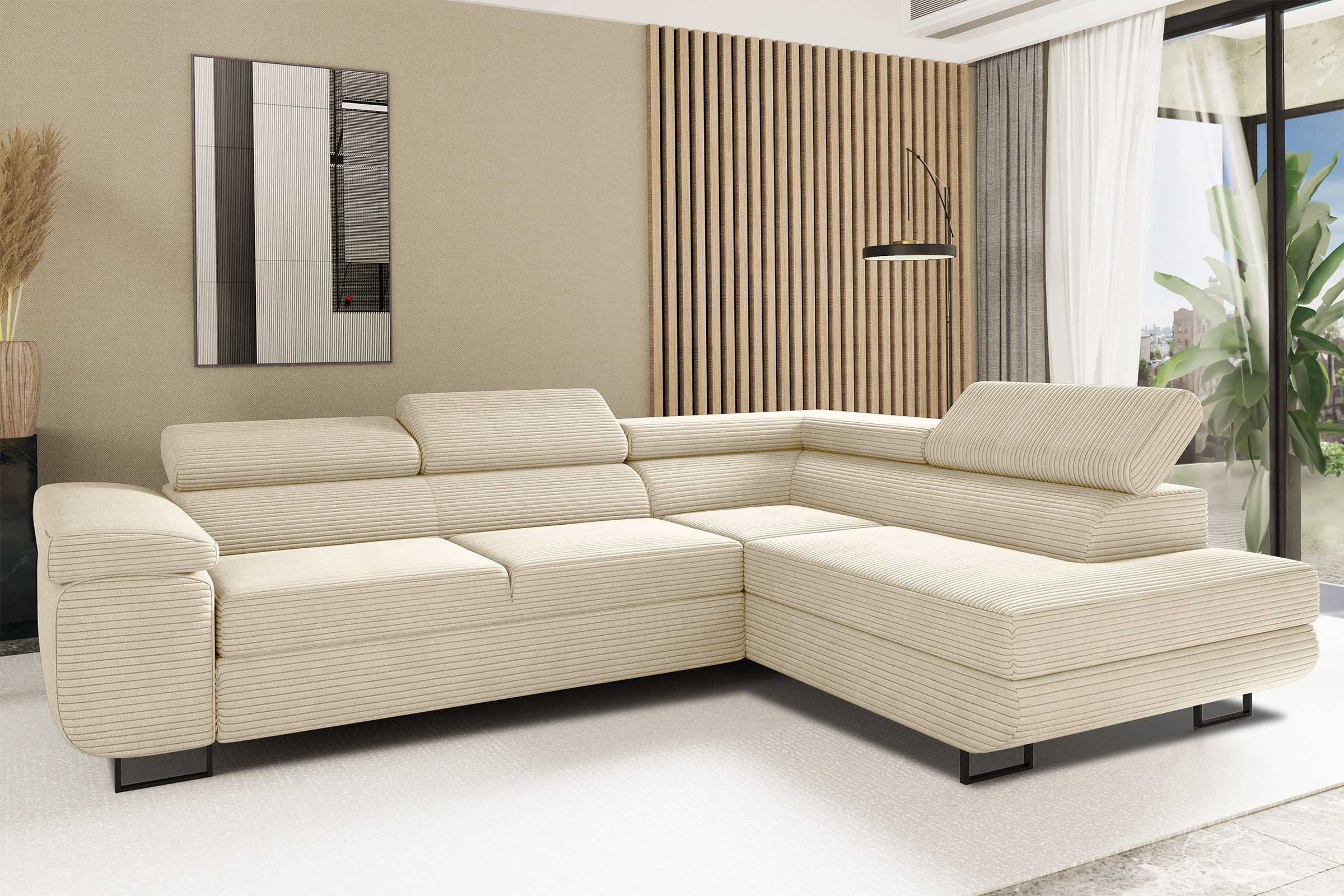 Ecksofa mit schlaffunktion und bettkasten Eckcouch L-Form ATOMIC stoff Poso