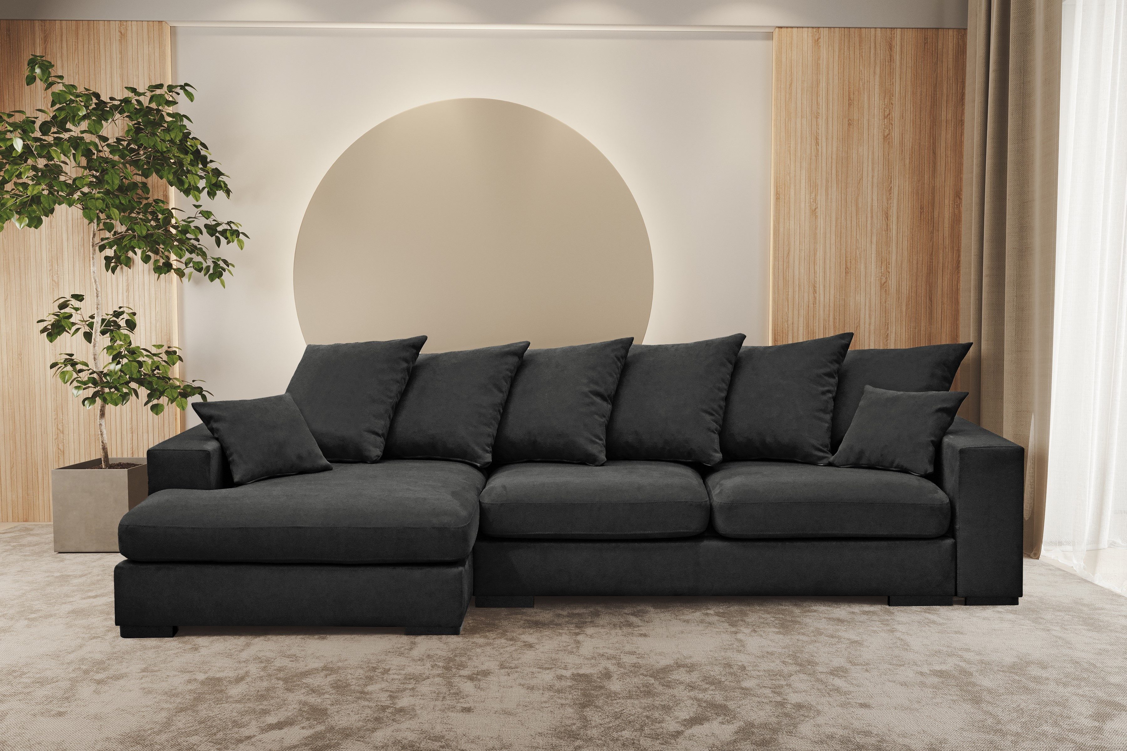 Das L-förmige Gabon-Ecksofa verfügt über eine Schlaffunktion und einen Behälter für Bettwäsche und eignet sich daher ideal als Bett für den täglichen oder gelegentlichen Schlaf. Das wichtigste Merkmal dieser Möbel ist die Qualität der Verarbeitung. Der Sitz ist mit hochflexiblem T28-Schaum gefüllt, der Komfort und Haltbarkeit für viele Jahre garantiert.
