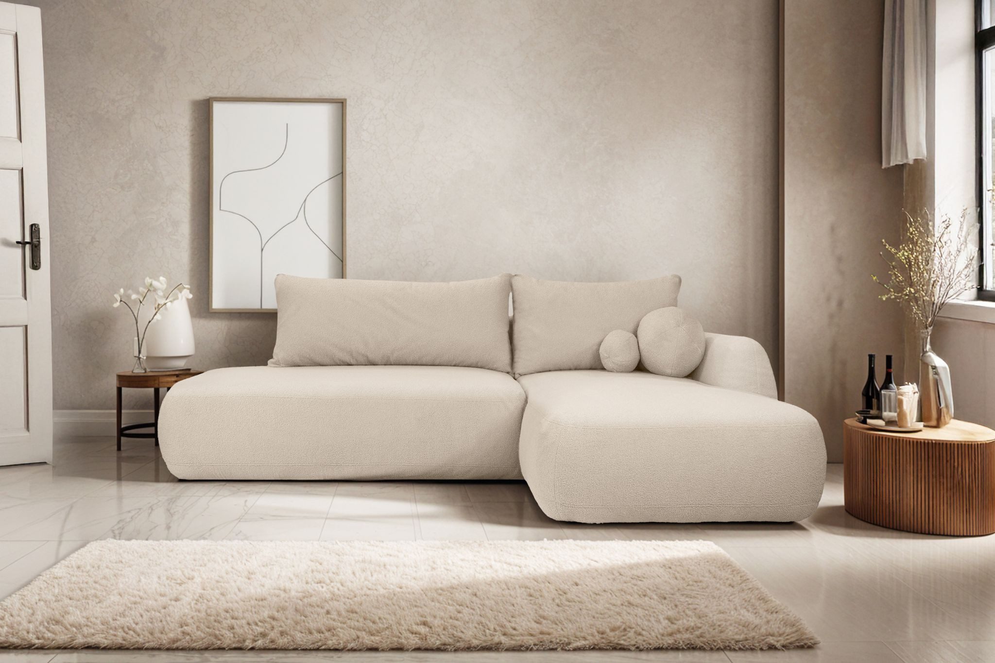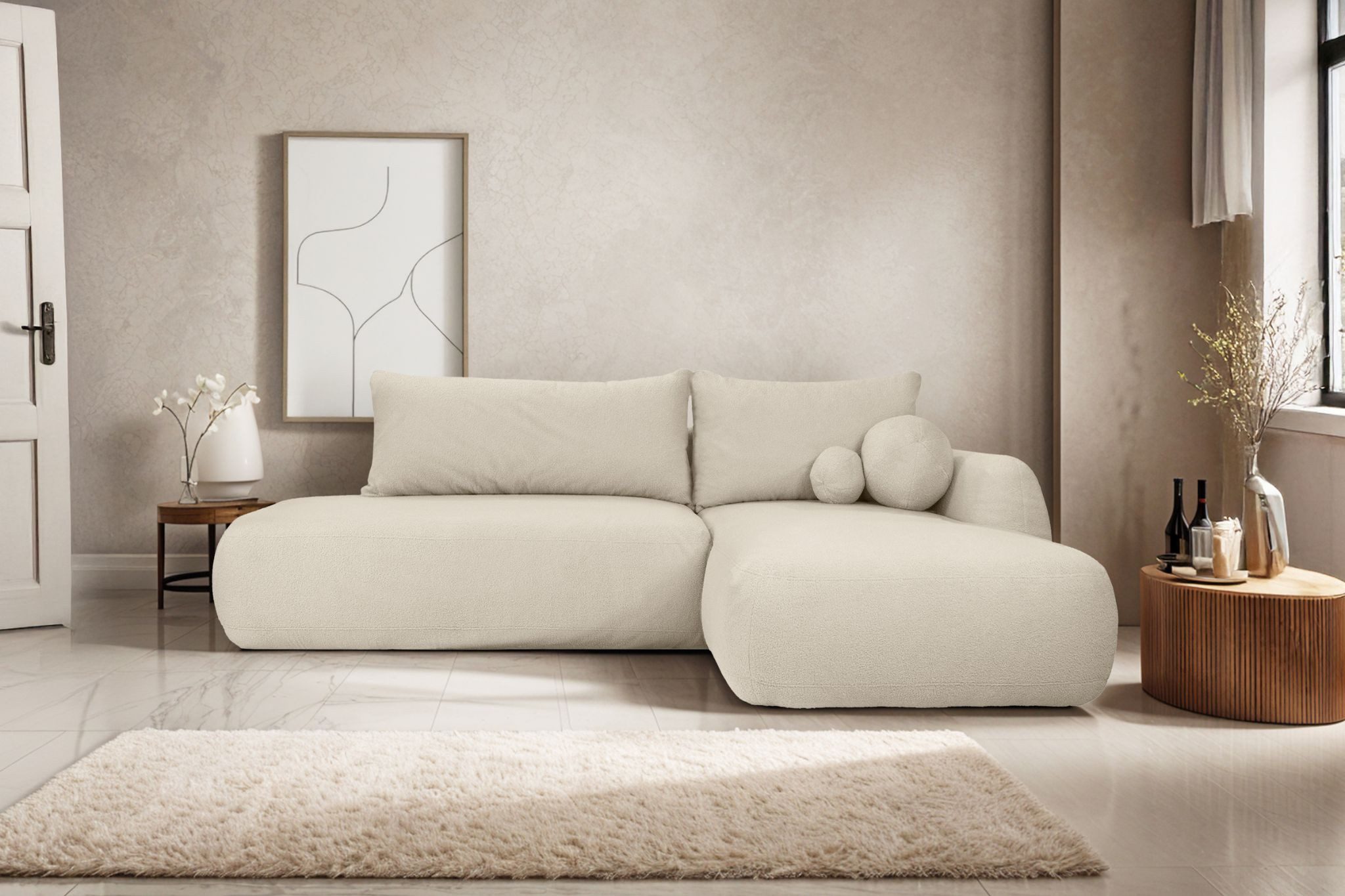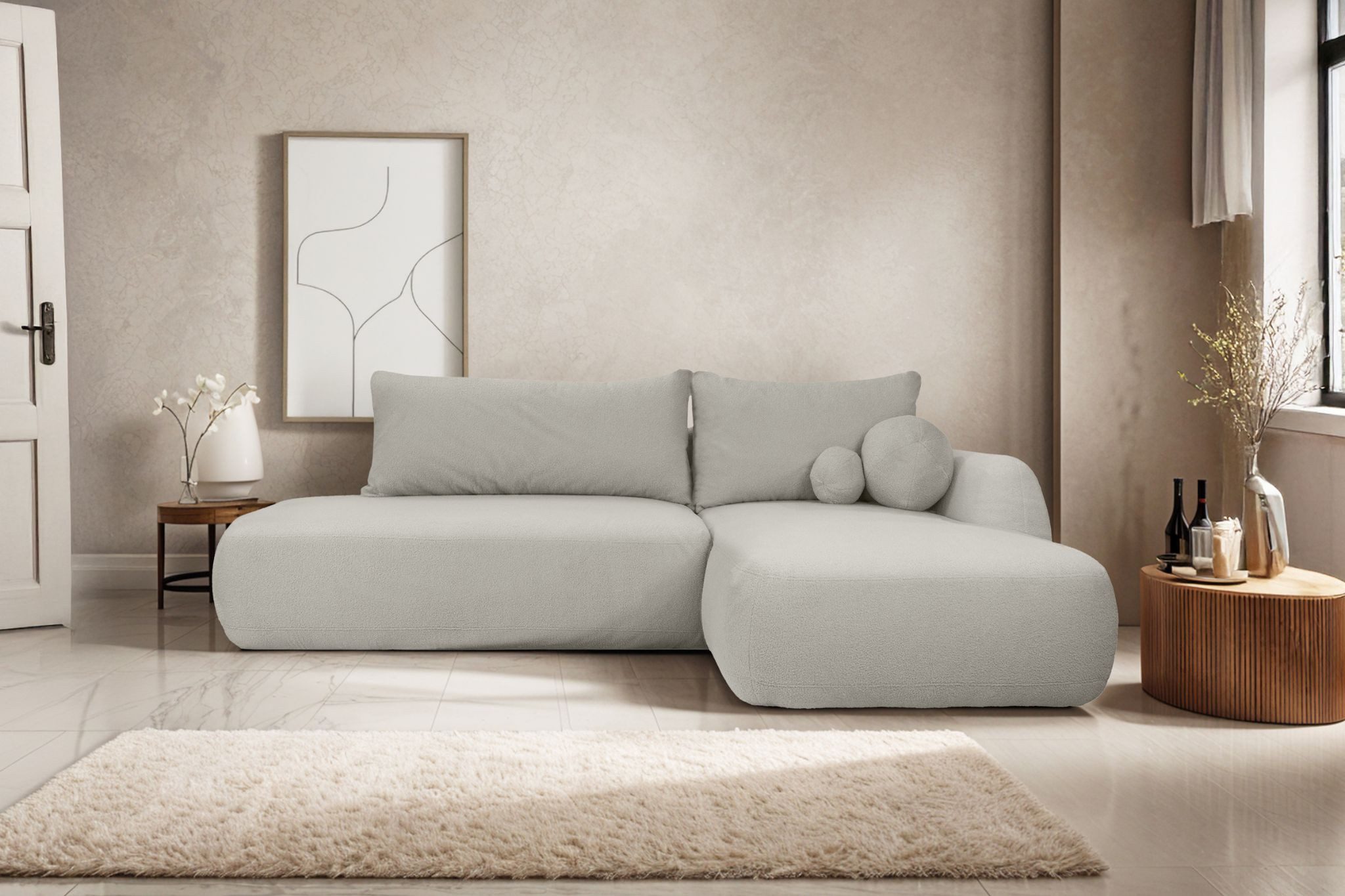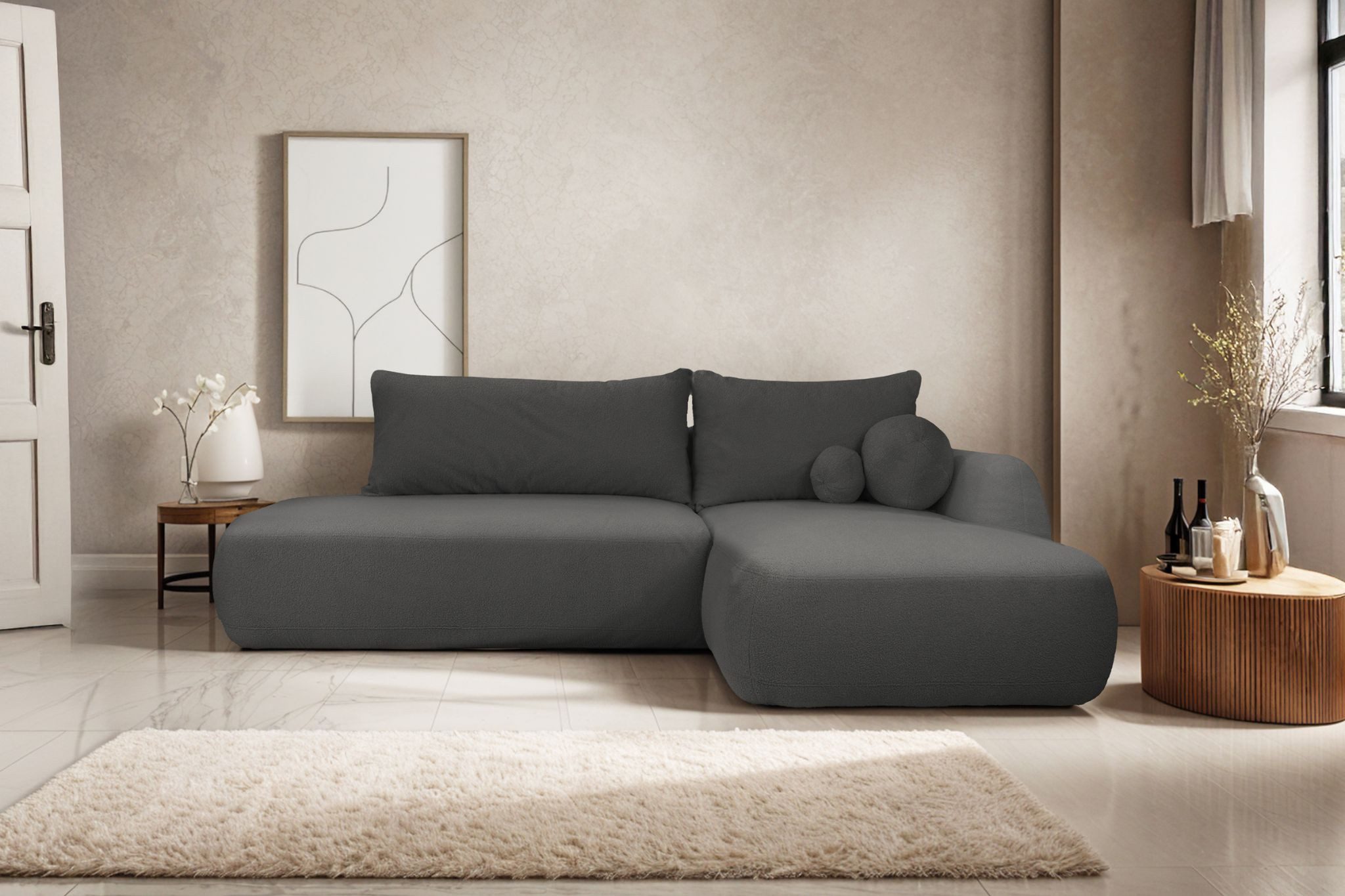 Sind Sie auf der Suche nach einem Möbelstück, das Komfort mit außergewöhnlichem Design verbindet? Dann ist das Ecksofa Fabio genau das Richtige für Sie! Das Ecksofa Fabio wurde in abgerundeten Formen hergestellt, was ihm ein modernes und elegantes Aussehen verleiht. Dieses originelle Design fügt sich perfekt in verschiedene Einrichtungsstile ein und verleiht ihm einen Hauch von Raffinesse und Klasse. Ein zusätzlicher Vorteil dieses Ecksofas ist die Schlaffunktion, mit der Sie das Möbelstück bequem in ein komfortables Bett verwandeln können. So können Sie auch bei begrenztem Platzangebot Gäste in Ihre Wohnung einladen und ihnen einen bequemen Schlafplatz bieten. Das Ecksofa verfügt außerdem über einen praktischen Bettzeugkasten, der für Ordnung im Wohnzimmer sorgt. Für die Ecke wurden hochwertige Materialien verwendet, an denen Sie lange Freude haben werden.