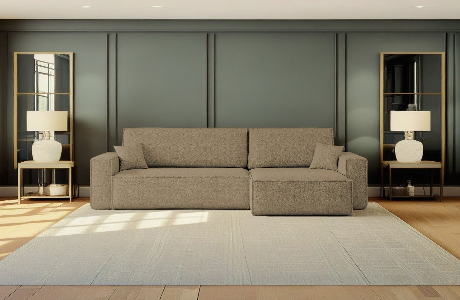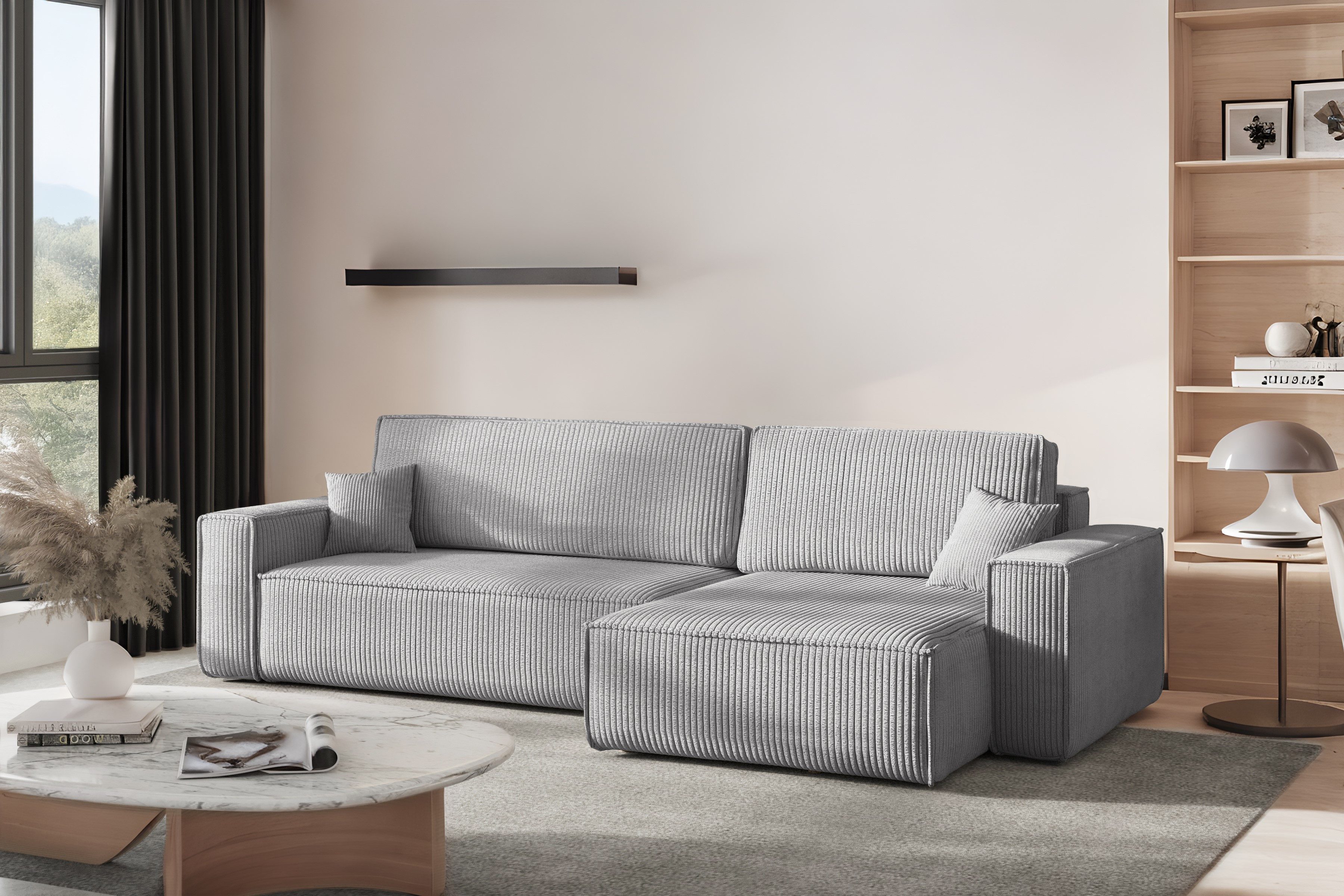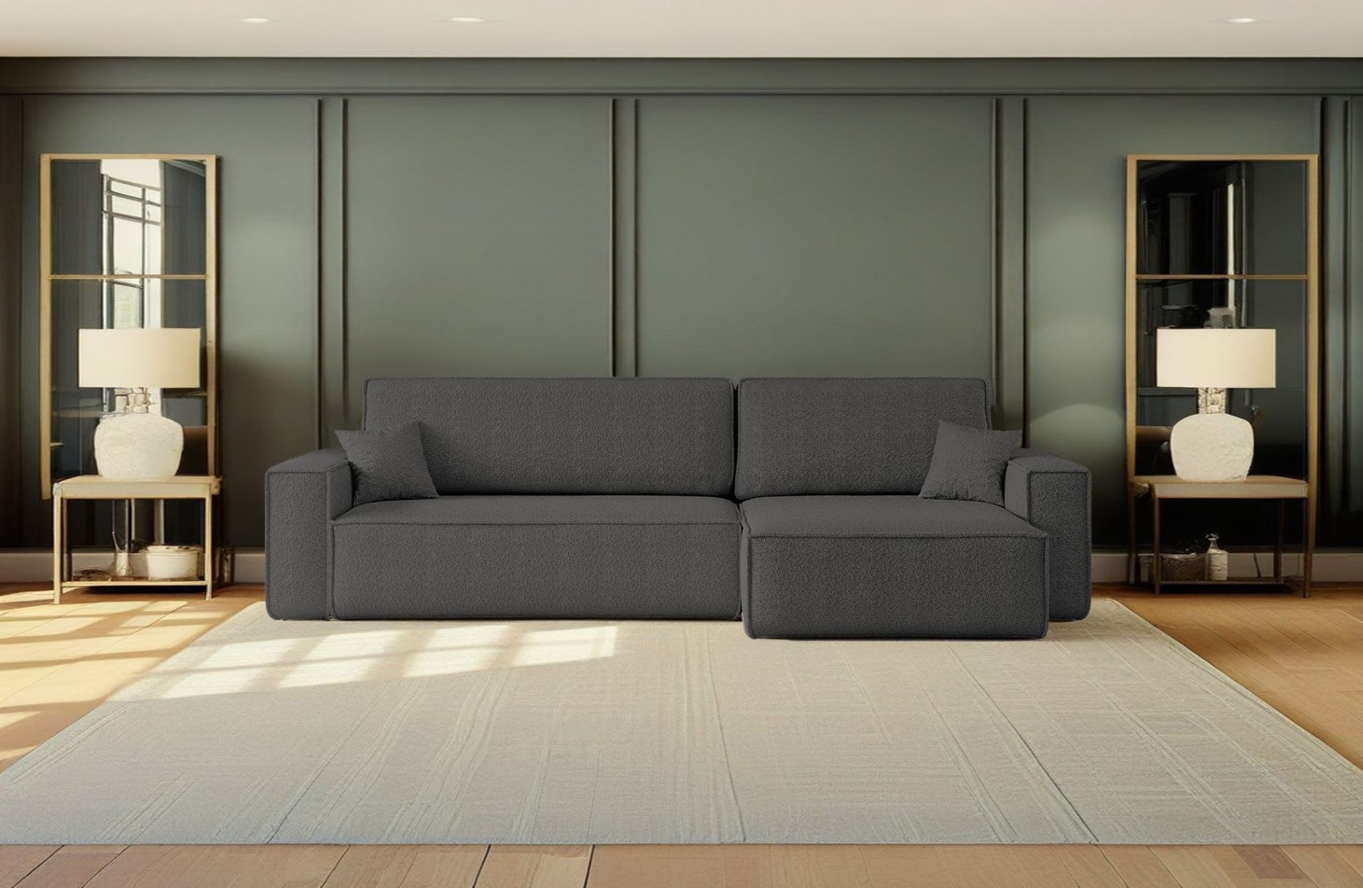 Entdecken Sie die perfekte Kombination aus Stil und Funktionalität mit unserem Ecksofa BEST XL, das jedes Interieur verwandeln wird. Dieses elegante Möbelstück wurde unter Berücksichtigung von Komfort, Stil und Funktionalität entworfen. Unser Ecksofa ist mit einer Schlaffunktion ausgestattet, die es schnell in ein geräumiges Bett verwandelt. Eine ideale Wahl für Filmabende oder als Zusatzbett für unerwartete Gäste. Unter der Sitzfläche des Ecksofas befindet sich ein Bettzeugbehälter, der zusätzlichen Stauraum bietet, was besonders in kleineren Räumen nützlich ist. Damit Sie sich entspannen können, ist das Ecksofa mit zwei Rückenkissen und zwei kleinen Kissen ausgestattet, um Ihnen maximalen Komfort und Halt zu bieten. Diese weichen Akzente tragen nicht nur zu Ihrem Komfort bei, sondern auch zum Charme der gesamten Einrichtung. Ob Sie sich nach einem anstrengenden Arbeitstag entspannen oder eine Party für Familie und Freunde veranstalten, dieses Ecksofa bietet Komfort, Stil und Funktionalität und erfüllt alle Anforderungen des modernen Lebens. Sehen Sie selbst, wie dieses Ecksofa Ihre Einrichtung in einen Ort voller Stil und Komfort verwandeln kann.