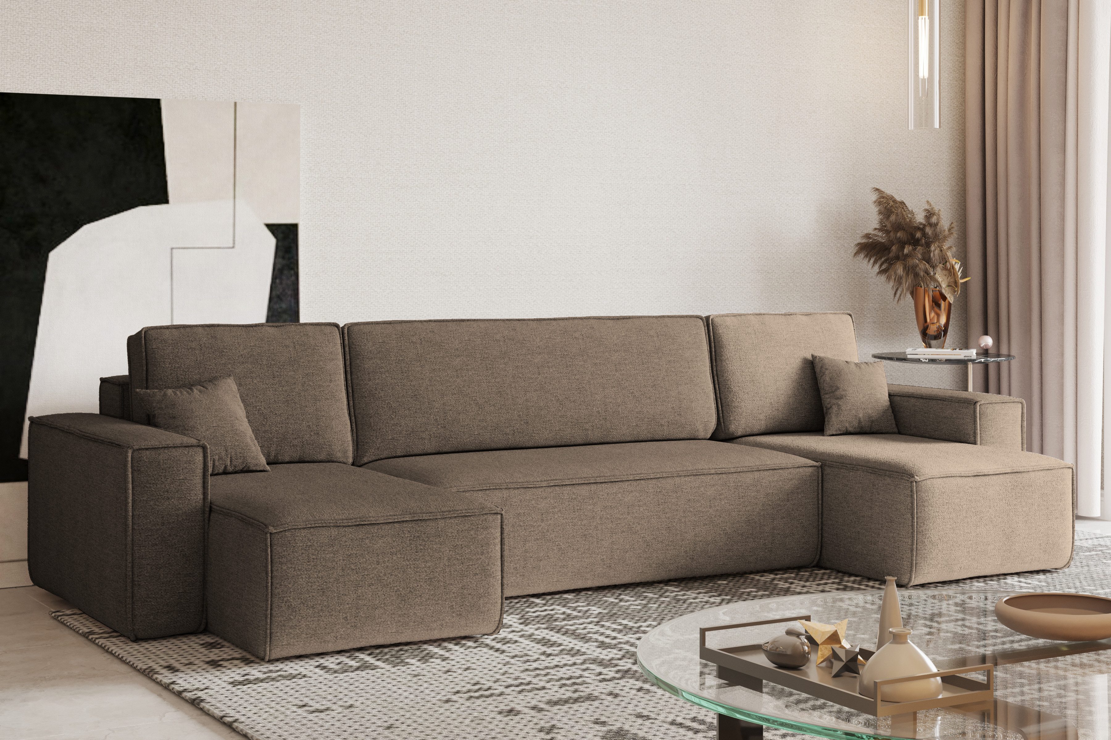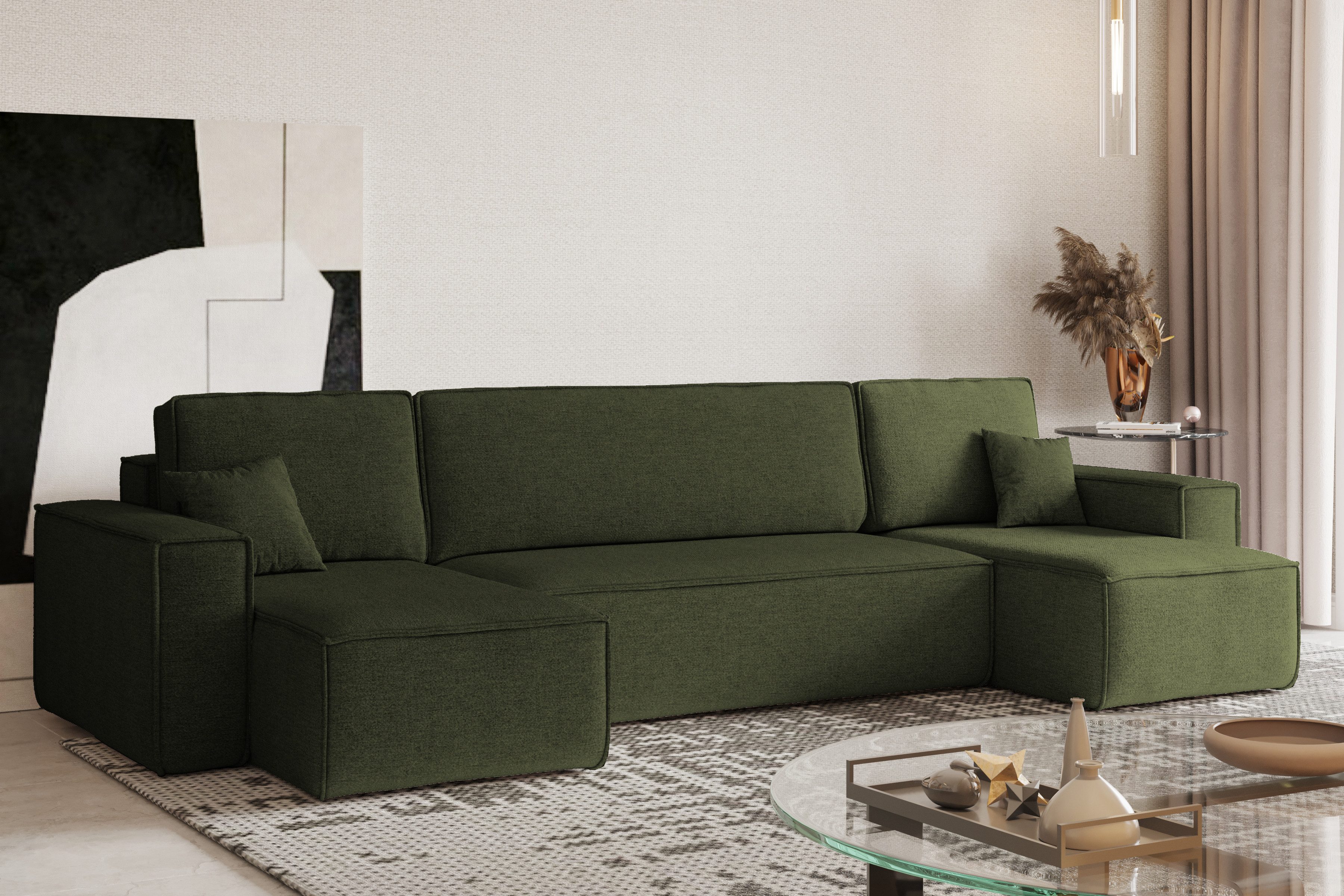 Die Couch U-Form Beige ist nicht nur optisch ansprechend, sondern auch äußerst funktional. Der integrierte Bettkasten bietet zusätzlichen Stauraum für Decken und Kissen, während die Schlaffunktion es ermöglicht, die Sofa schnell und einfach in ein komfortables Bett zu verwandeln. Ob für einen gemütlichen Fernsehabend oder als Schlafplatz für Gäste – diese Ecksofa erfüllt alle Ihre Bedürfnisse. Die pflegeleichte Oberfläche und die robuste Bauweise machen diese Couch zu einer praktischen Wahl für Familien und Haushalte jeder Größe.