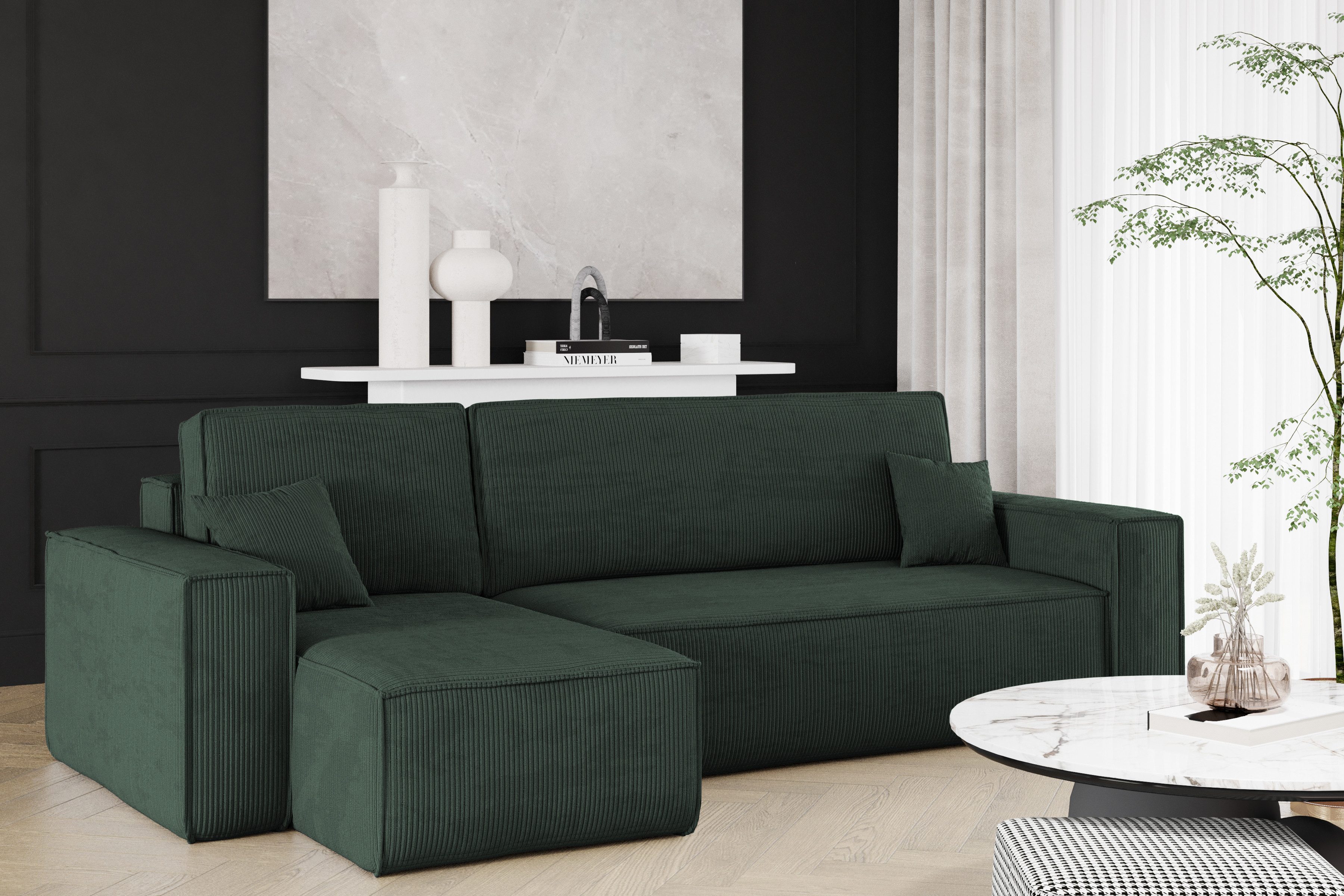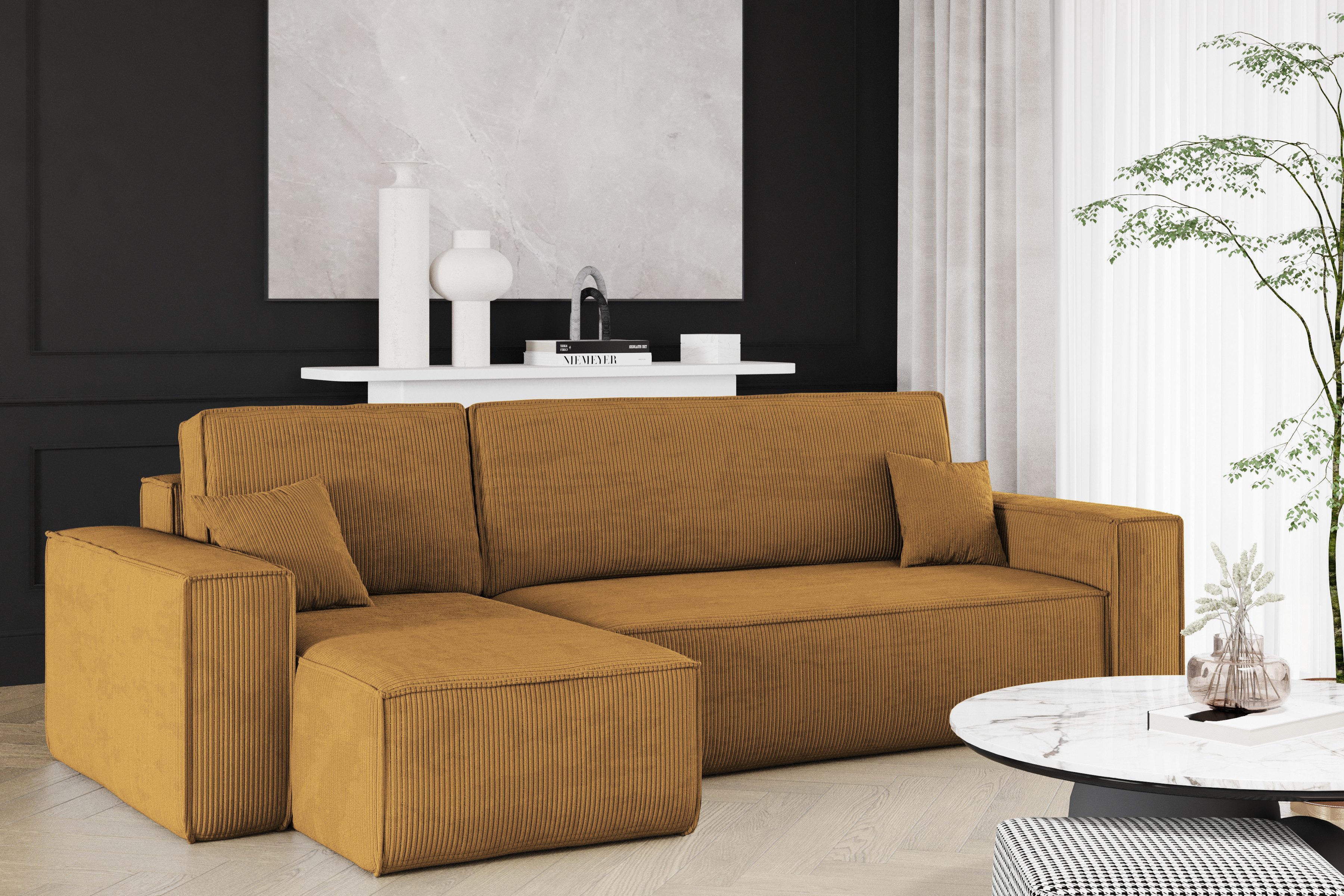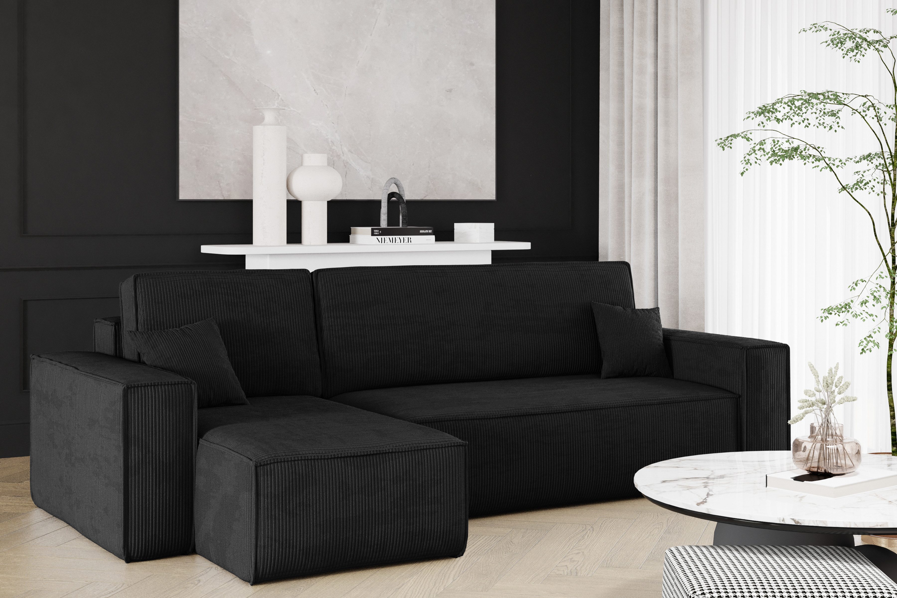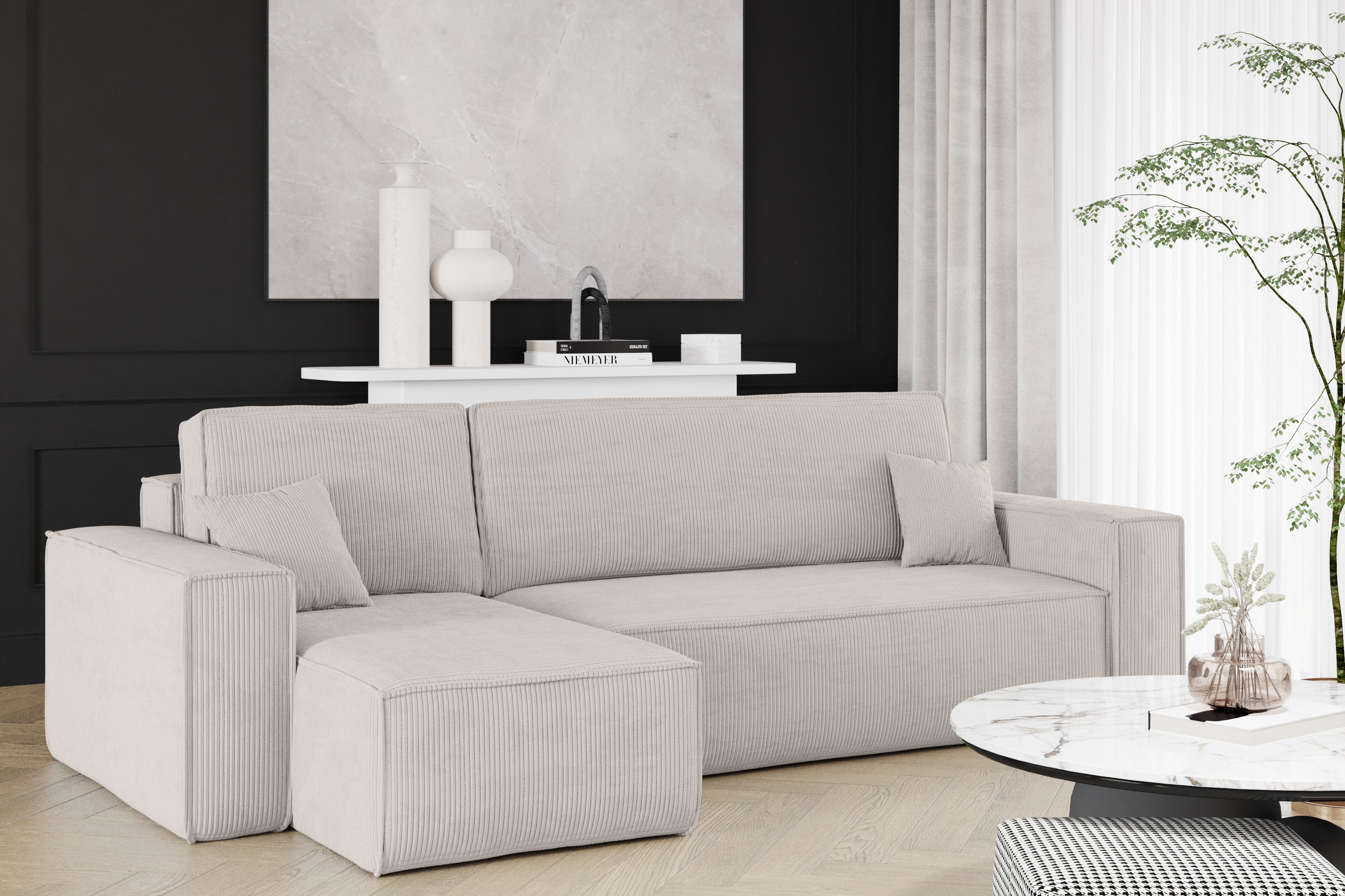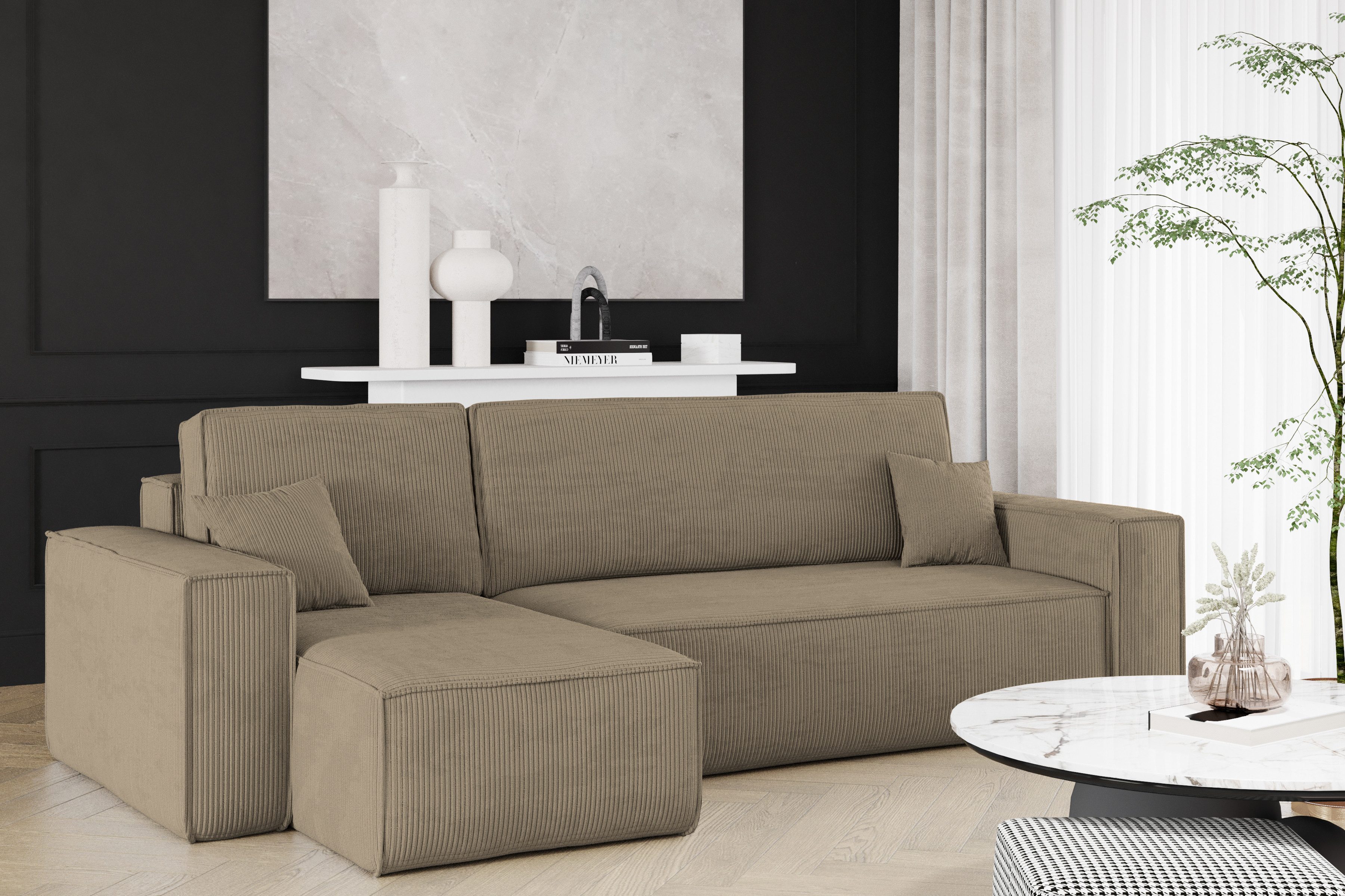 Das Ecksofa BEST mit Schlaffunktion und Bettkasten vereint Funktionalität und Design auf höchstem Niveau. Dieses Ecksofa mit Schlaffunktion lässt sich im Handumdrehen in ein bequemes Bett verwandeln, ideal für Übernachtungsgäste. Der integrierte Bettkasten bietet zusätzlichen Stauraum für Decken und Kissen, was besonders in kleinen Wohnungen von Vorteil ist. Die robuste Konstruktion und der pflegeleichte dicke Cord-Stoff garantieren eine lange Lebensdauer und einfache Pflege. Egal, ob für gemütliche Fernsehabende oder als Schlafplatz für Gäste – diese Eckcouch Cord erfüllt alle Ihre Anforderungen und bringt Stil und Funktionalität in Ihr Zuhause.