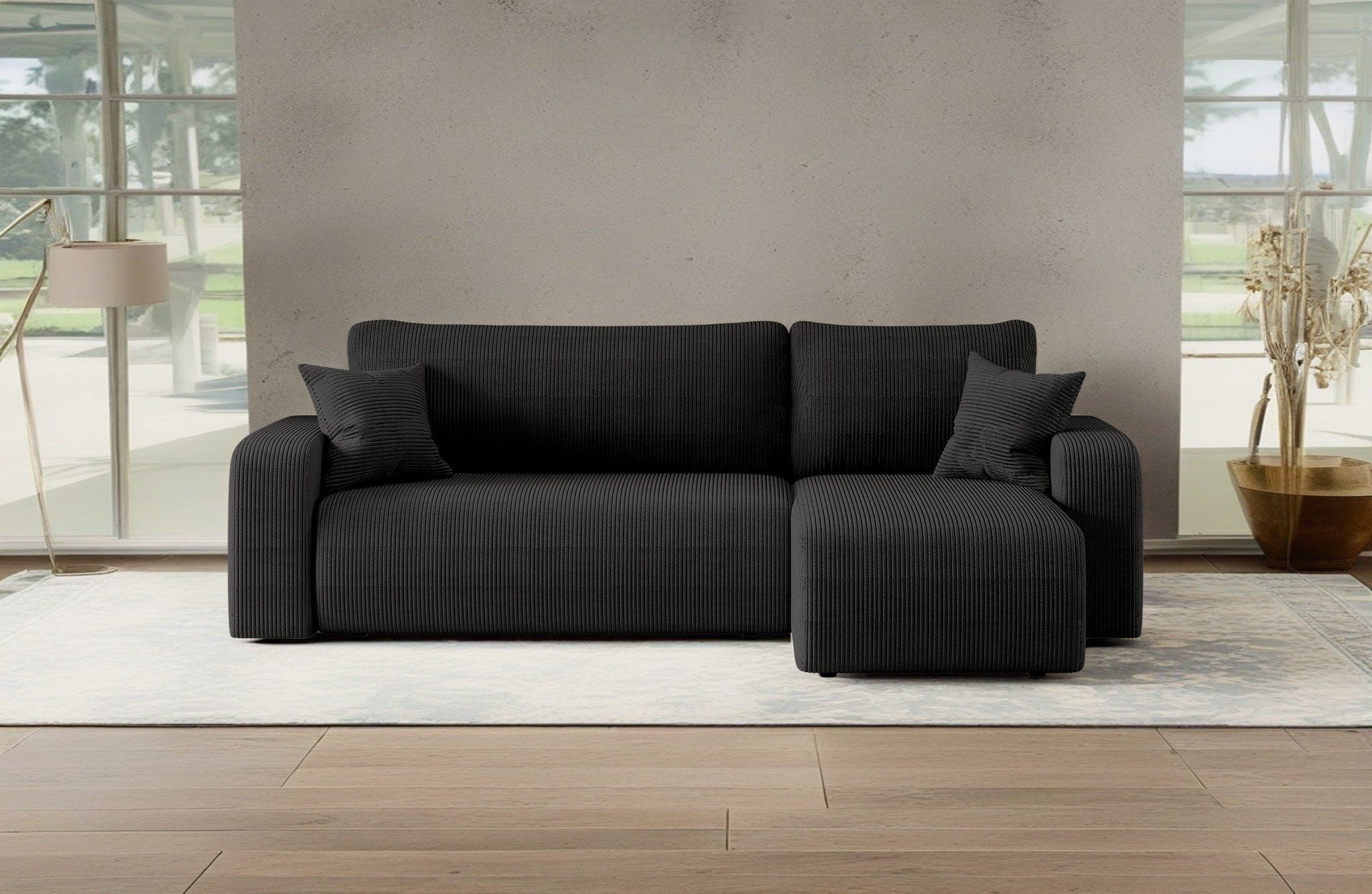 Entdecken Sie die perfekte Kombination aus Stil und Funktionalität mit unserem Ecksofa MILANO L, das jedes Interieur verwandeln wird. Dieses elegante Möbelstück wurde unter Berücksichtigung von Komfort, Stil und Funktionalität entworfen. Unser Ecksofa ist mit einer Schlaffunktion ausgestattet, die es schnell in ein geräumiges Bett verwandelt. Eine ideale Wahl für Filmabende oder als Zusatzbett für unerwartete Gäste. Unter der Sitzfläche des Ecksofas befindet sich ein Bettzeugbehälter, der zusätzlichen Stauraum bietet, was besonders in kleineren Räumen nützlich ist. Damit Sie sich entspannen können, ist das Ecksofa mit zwei Rückenkissen und zwei kleinen Kissen ausgestattet, um Ihnen maximalen Komfort und Halt zu bieten. Diese weichen Akzente tragen nicht nur zu Ihrem Komfort bei, sondern auch zum Charme der gesamten Einrichtung. Ob Sie sich nach einem anstrengenden Arbeitstag entspannen oder eine Party für Familie und Freunde veranstalten, dieses Ecksofa bietet Komfort, Stil und Funktionalität und erfüllt alle Anforderungen des modernen Lebens. Sehen Sie selbst, wie dieses Ecksofa Ihre Einrichtung in einen Ort voller Stil und Komfort verwandeln kann.