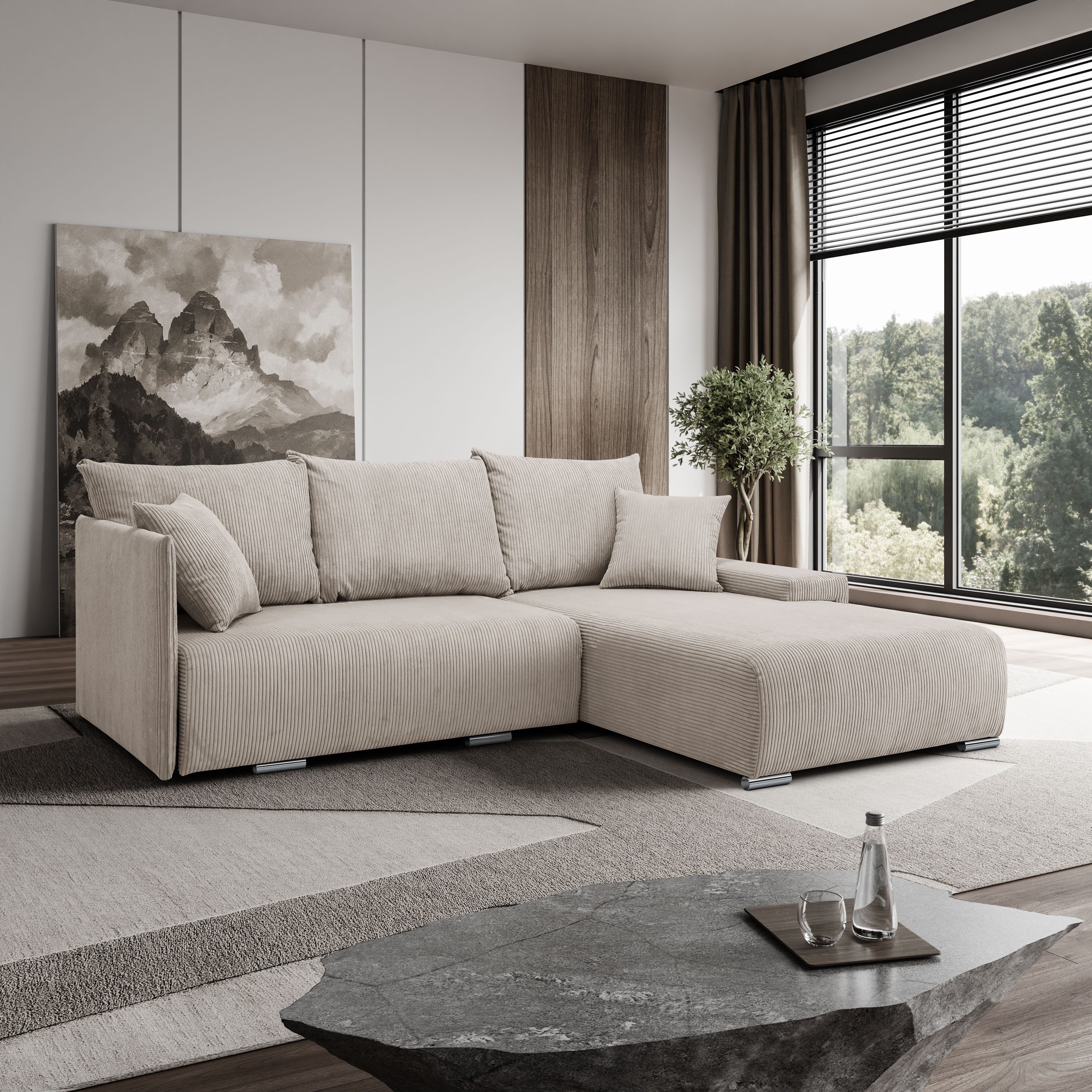 Das Ecksofa LIVORNO L ist eine Kombination aus modernem Design, Funktionalität und außergewöhnlichem Komfort. Sein durchdachtes Design macht es zum perfekten Entspannungszentrum in jedem Wohnzimmer. Durch die L-Form können Sie sich in einer größeren Gruppe frei ausbreiten und so den perfekten Ort zum Entspannen mit Familie und Freunden schaffen. Das Modell LIVORNO L ist mit einer Schlaffunktion ausgestattet, die es Ihnen ermöglicht, sich bequem auszuruhen und den Raum voll auszunutzen, so dass Sie die Ecke schnell in ein bequemes und funktionelles Bett verwandeln können. Der integrierte Stauraum für das Bettzeug sorgt für Ordnung und bietet Platz für zusätzliche Textilien oder andere wichtige Accessoires. Überzeugen Sie sich selbst davon, wie dieses Ecksofa Ihr Interieur in einen Ort voller Stil und Komfort verwandeln kann.