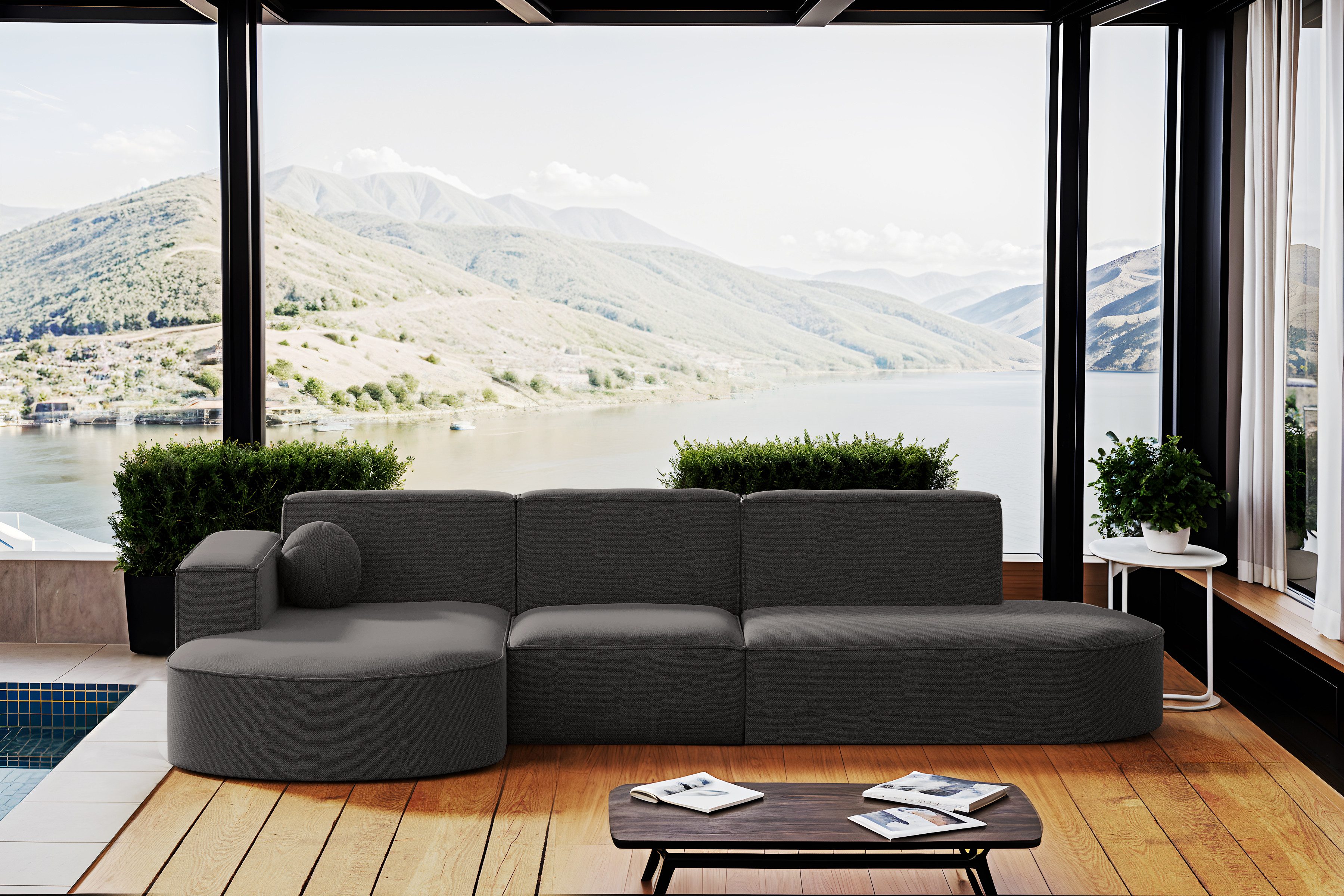 Entdecken Sie den perfekten Komfort des Ecksofas Modena L Patio, die perfekte Lösung für Ihr Wohnzimmer, Arbeitszimmer oder den Sitzungssaal. Das Ecksofa Modena L Patio, das auf einer gewellten Feder basiert, garantiert Stabilität und Komfort und bietet ein angenehmes Erlebnis beim Entspannen, beim Anschauen Ihres Lieblingsfilms oder beim Lesen eines Buches. Dank der hochwertigen Materialien und der soliden Konstruktion wird das Ecksofa Modena L Patio seinen Benutzern viele Jahre lang Freude bereiten. Dieses elegante und ungewöhnliche Möbelstück passt perfekt in jede Inneneinrichtung Ihres Hauses. Verbringen Sie angenehme Momente mit Ihrer Familie oder Ihren Freunden. Genießen Sie die Ecke mit Ihrer Familie sowohl zu Hause als auch auf der Terrasse.