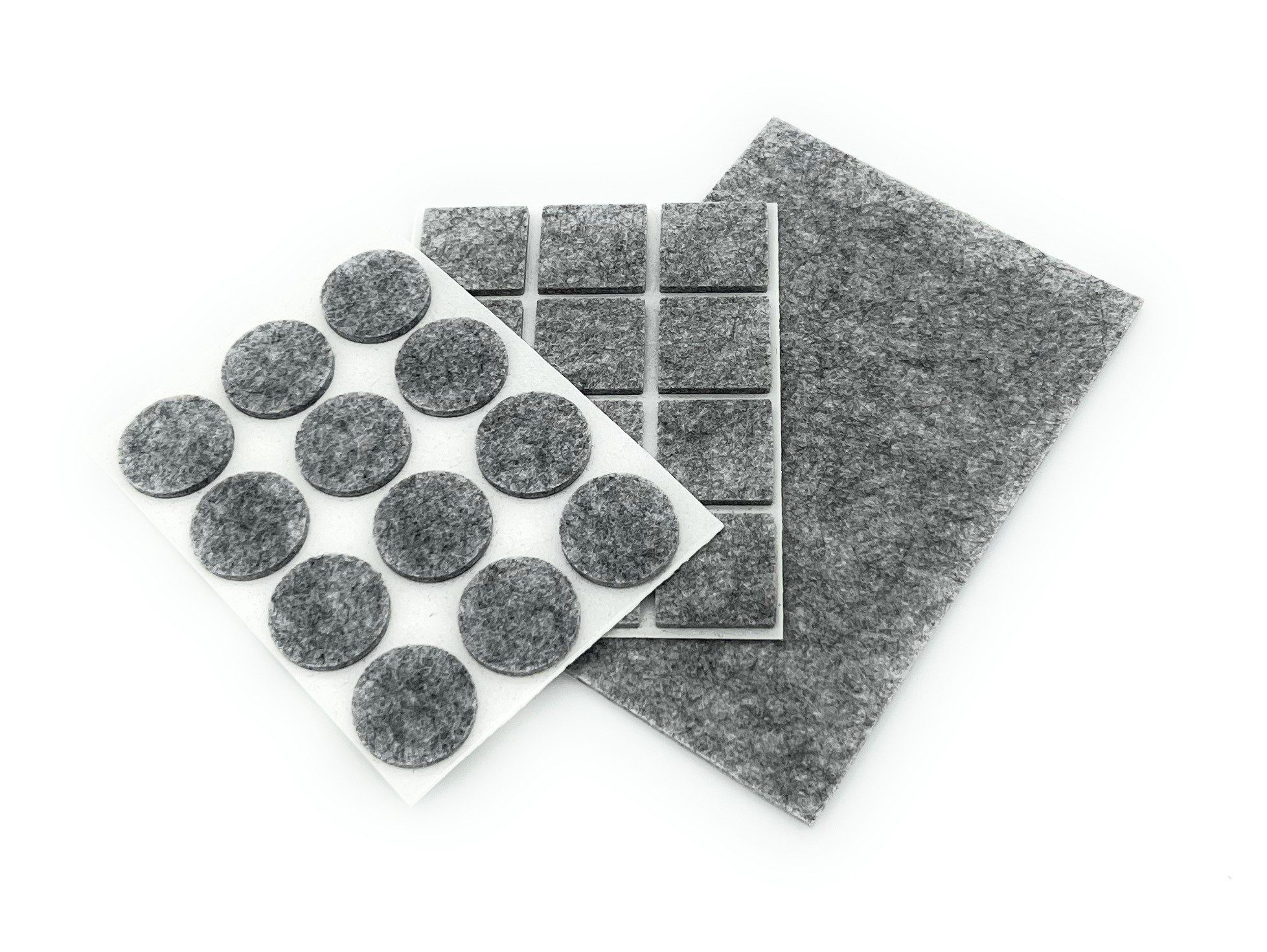 Perfektes SET: 12 x 25 x 25mm eckige Pads | 12 x 25 mm runde Pads | 1 x 100 x 150 mm großes Pad zum zuschneiden