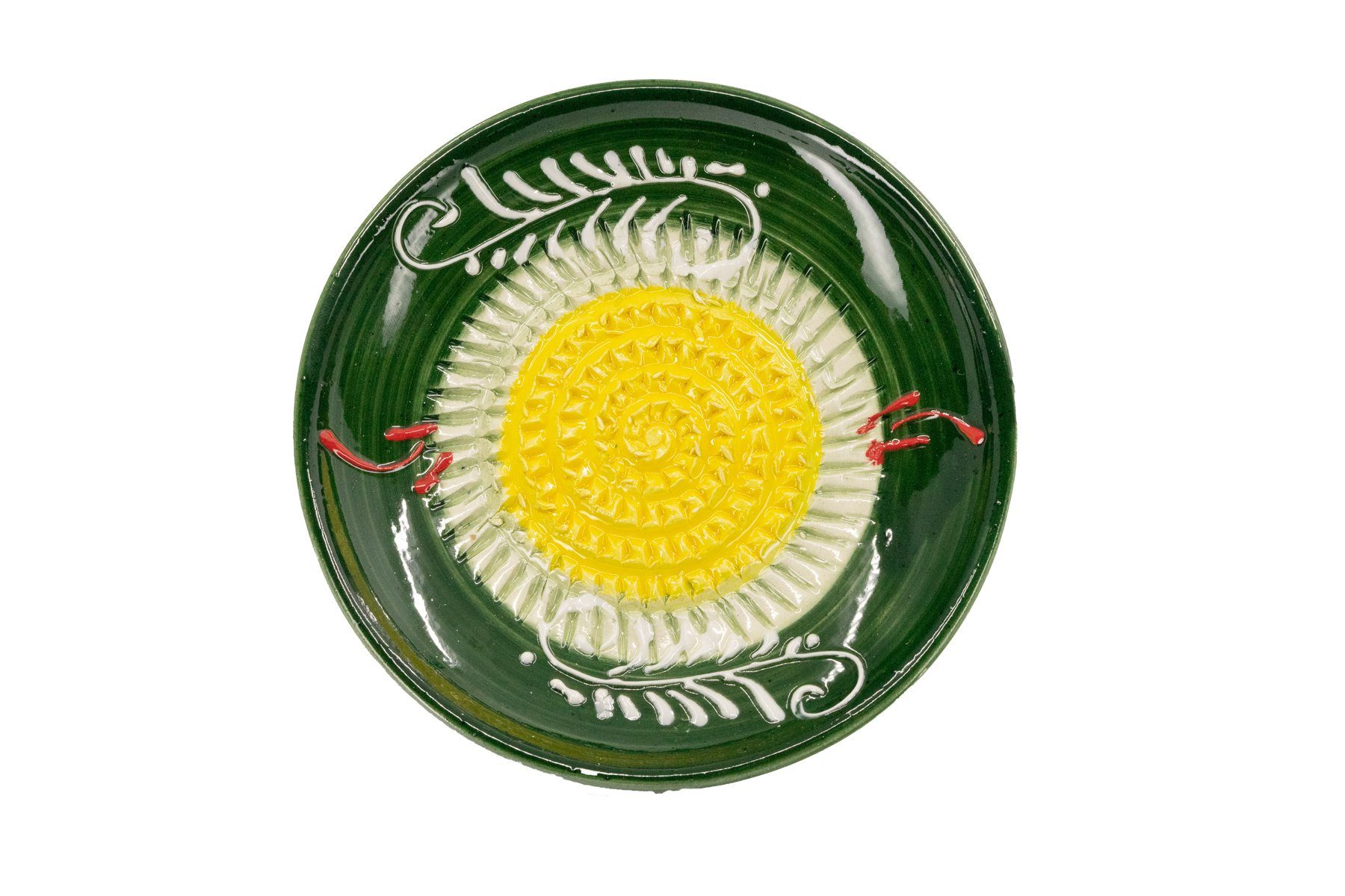 Haushaltshelfer müssen nicht nur praktisch, sondern können auch ein Hingucker für die Küche sein. Die Keramik Reibeteller sind Unikate die in Handarbeit in Spanien hergestellt werden. Ganz einfach gelingt das Reiben von Knoblauch, Ingwer, Gewürze, Schokolade, Tomate, Parmesan, Muskatnuss Zitrone/Orange und vieles mehr. Die Anwendung ist einfach: Reiben Sie auf dem Teller so wie es bei Ihnen am besten funktioniert, mit kreisenden Bewegungen oder einfach von links nach rechts. Sie brauchen kein weiteres Geschirr da direkt in die Schale oder den Teller gerieben wird. Bei Knoblauch & Ingwer sollte die Reibe angefeuchtet werden. Все trockenen Zutaten werden trocken gerieben. Die Teller reiben fast alles und im Vergleich zu Reiben aus Metall besteht kaum Verletzungsgefahr. Auch durch eine starke und regelmäßige Nutzung stumpfen die Zähne nicht ab und bleiben wie am ersten Tag. Die Reibeteller haben einen Durchmesser von 12cm und sind spülmaschinenfest.