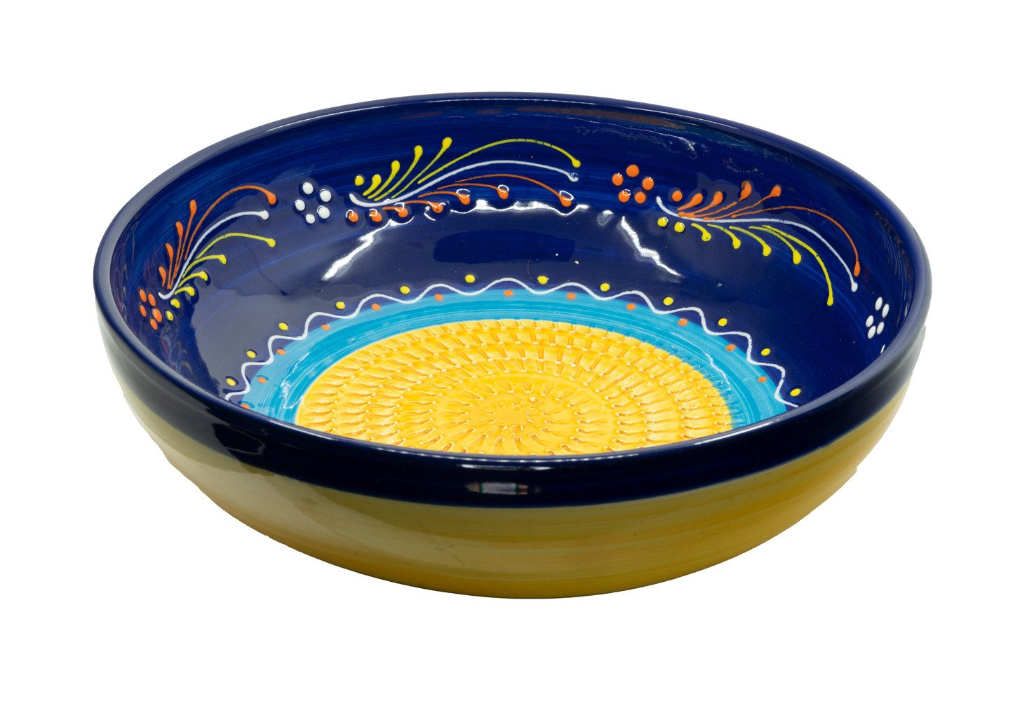 Kaladia Multireibe Große Reibeschüssel in Blau/Blau/Orange, Keramik, handbemalte Küchenreibe - Made in Spain