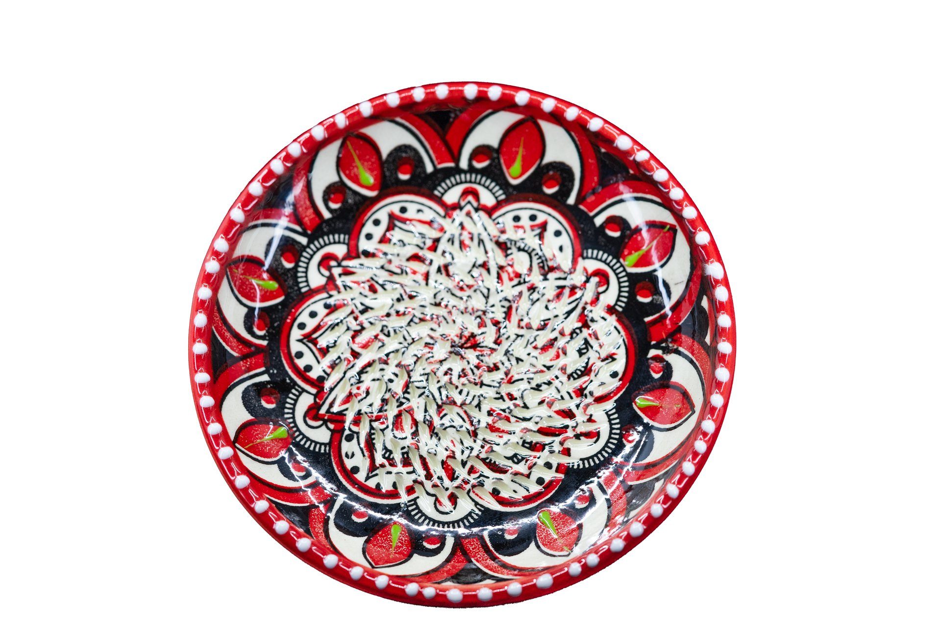 Haushaltshelfer müssen nicht nur praktisch, sondern können auch ein Hingucker für die Küche sein. Die Keramik Reibeteller sind Unikate die in Handarbeit in Spanien hergestellt werden. Ganz einfach gelingt das Reiben von Knoblauch, Ingwer, Gewürze, Schokolade, Tomate, Parmesan, Muskatnuss Zitrone/Orange und vieles mehr. Die Anwendung ist einfach: Reiben Sie auf dem Teller so wie es bei Ihnen am besten funktioniert, mit kreisenden Bewegungen oder einfach von links nach rechts. Sie brauchen kein weiteres Geschirr da direkt in die Schale oder den Teller gerieben wird. Bei Knoblauch & Ingwer sollte die Reibe angefeuchtet werden. Все trockenen Zutaten werden trocken gerieben. Die Teller reiben fast alles und im Vergleich zu Reiben aus Metall besteht kaum Verletzungsgefahr. Auch durch eine starke und regelmäßige Nutzung stumpfen die Zähne nicht ab und bleiben wie am ersten Tag. Die Reibeteller haben einen Durchmesser von 12cm und sind spülmaschinenfest.