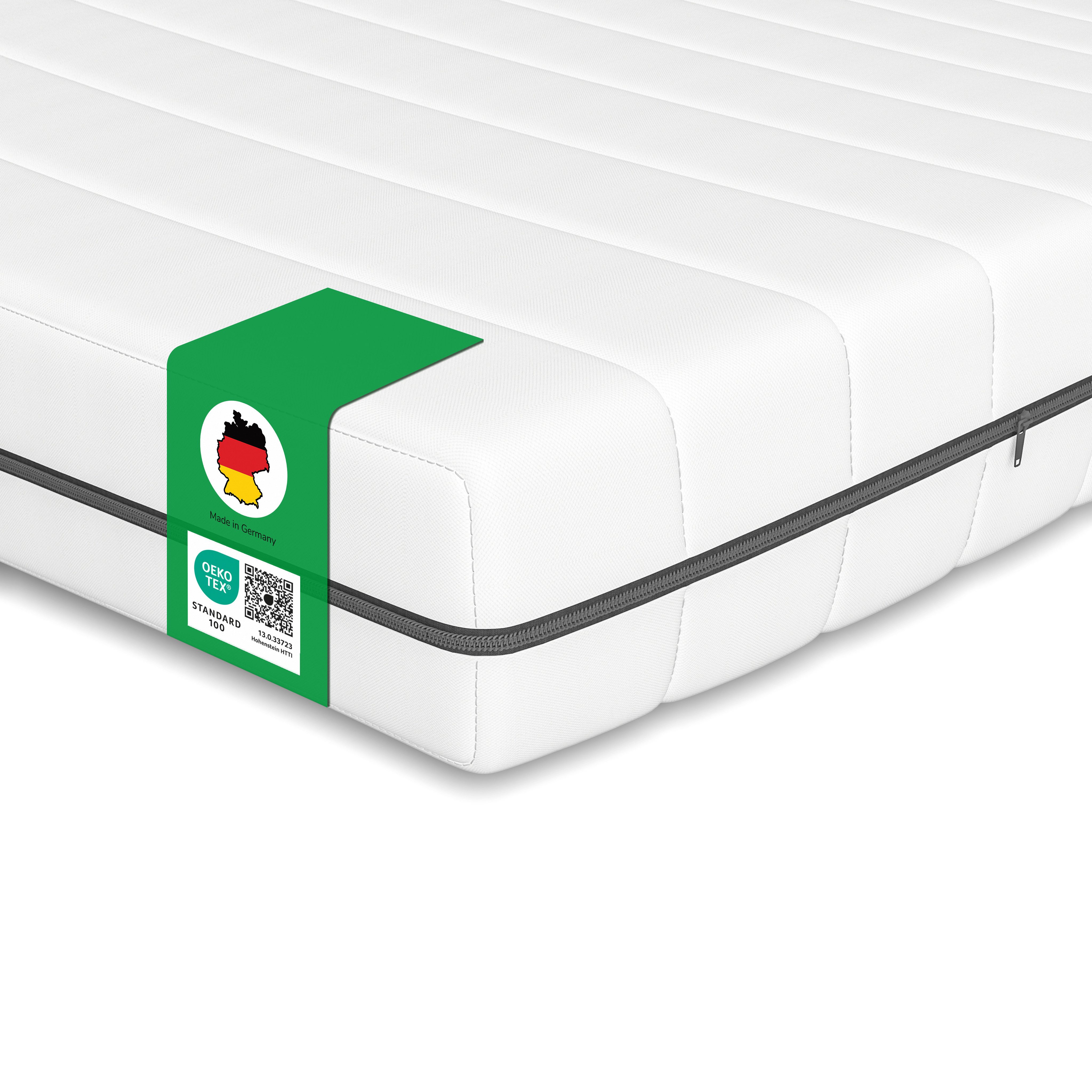 Die Matratze wird platzsparend gerollt & gefaltet in einer Transporttüte geliefert. Das Paket ist maximal 1 m hoch, die genaue Matratzengröße ist auf dem Verpackungsetikett angegeben.