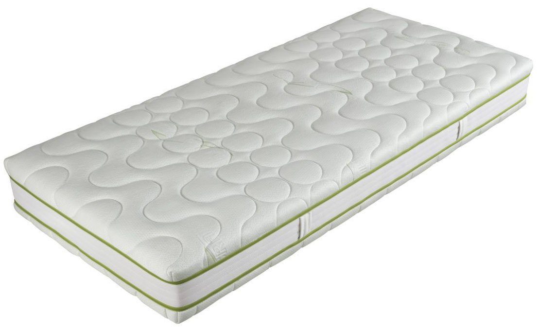 Top-Features | 3D-Klimaband im Bezug für hohe Atmungsaktivität - Ein umlaufendes Klimaband (Lüftungsband) fördert die Luftzirkulation und unterstützt einen schnellen Feuchtigkeitstransport. Aloe vera - Aloe vera ist ein Allrounder in der Naturheilkunde. Die vielfältigen gesundheitsfördernden Eigenschaften der Aloe vera sollen bei vielen Beschwerden helfen können. Durch eine spezielle Aloe-vera-Veredelungr nutzt man ihre antibakteriellen und antimykotischen - also gegen Bakterien und gegen Pilze wirkenden - Eigenschaften. So kann ein gesünderes und hygienisches Bettklima entstehen. Goldenes M - Das »Goldene M« ist ein Qualitätssiegel der Deutschen Gütegemeinschaft Möbel e. V. (DGM), ein Zusammenschluss aus Herstellern, Verbänden und Instituten, u. a. dem TÜV Rheinland. Dieses Siegel steht für Qualität made in Germany und für das Thema »gesundes Wohnen«. Getestet werden die Produkte auf Stabilität, Haltbarkeit und auf die Einhaltung der Richtwerte gesundheitsschädlicher Stoffe. Es ist das einzige in Deutschland anerkannte Gütezeichen für Möbel, Federkernmatratzen sowie Polyätherschaum-Matratzen. |