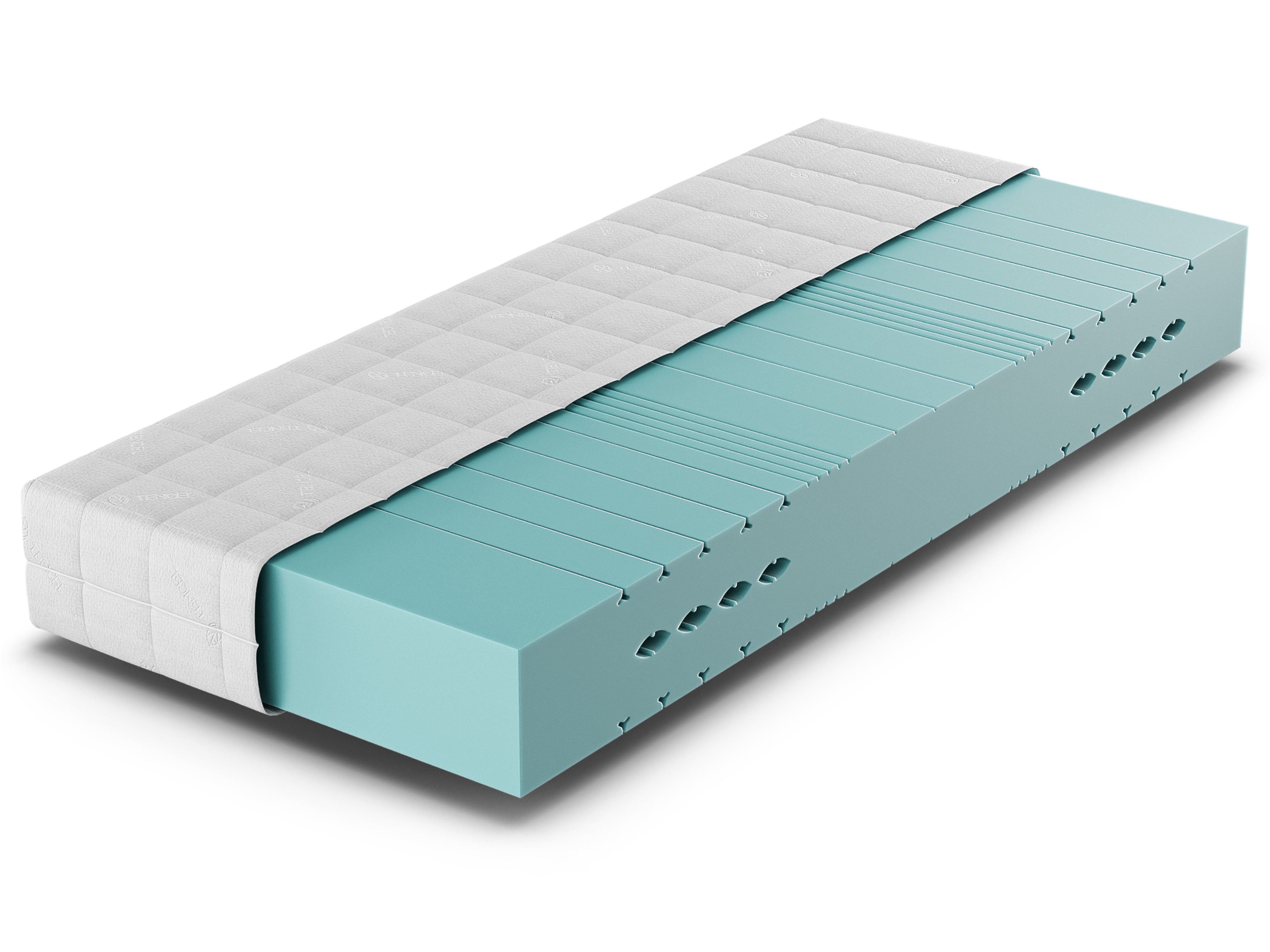 Unser hochwertige 7-Zonen-Matratze HR Blue mit High-Resilience (HR)-Schaum passt sich perfekt an deinen Körper an und sorgt für optimale Druckentlastung, genau dort, wo du sie brauchst. Die dreidimensionalen Einschnitte im Schulterbereich ermöglichen eine gezielte Anpassung, sodass deine Schultern sanft einsinken können, während dein Rücken entlastet wird. Im Lenden- und Beckenbereich bietet die Kaltschaummatratze stabile Unterstützung und fördert eine gesunde Schlafhaltung.