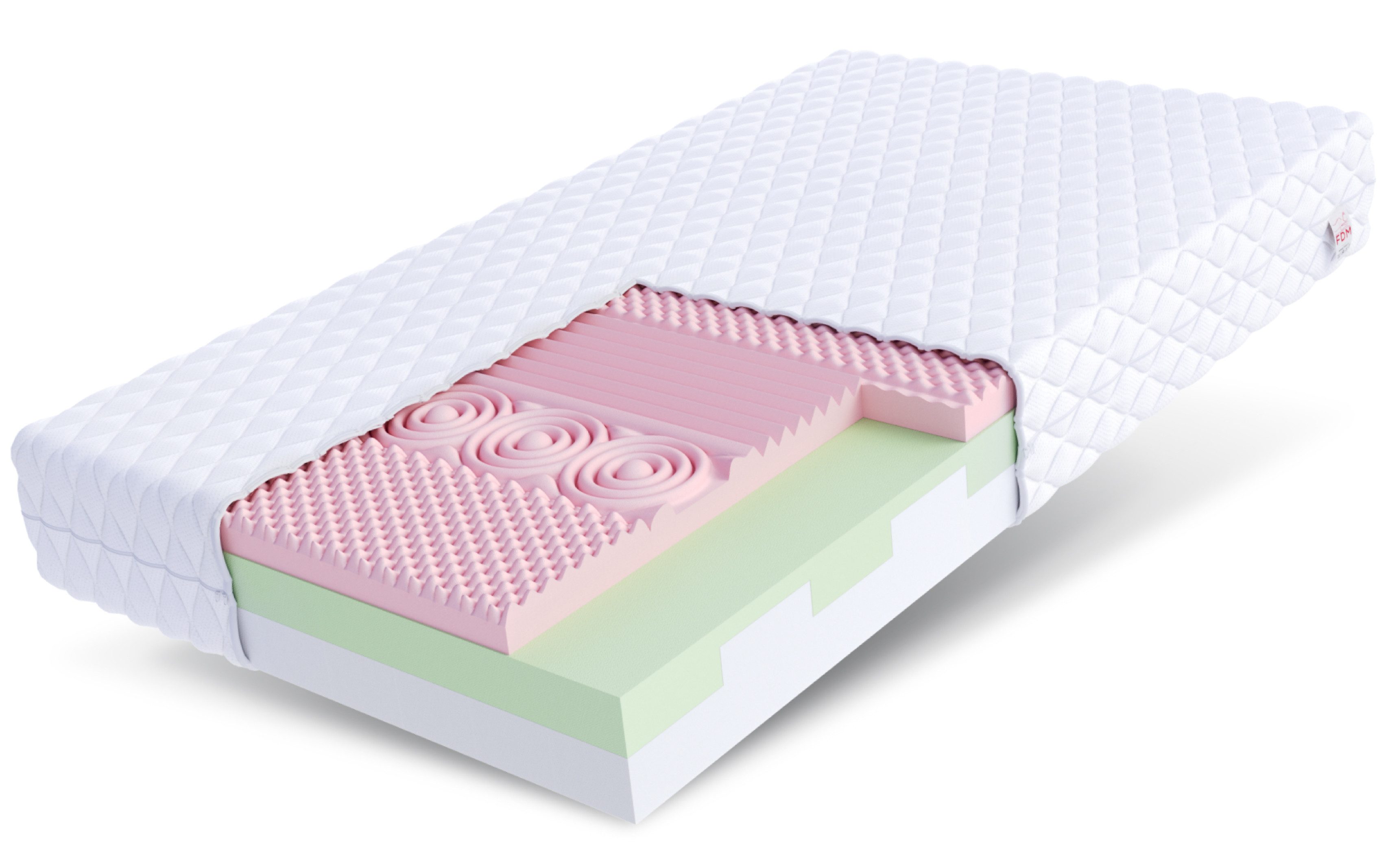 ist ein spezieller Rohstoff für Matratzen. Sie wird immer ganz oben auf einer Hybridmatratze platziert, so dass sie in direktem Kontakt mit dem Körper des Benutzers steht. Eine seiner am meisten geschätzten Eigenschaften ist, dass es sich unter dem Einfluss von Temperatur und Gewicht perfekt an die Kurven des Körpers anpasst. Der Schaumstoff verformt sich langsam, so dass er den Körper des Schlafenden vollständig umhüllt. Dank ihrer konturierten Oberfläche passt sie sich noch genauer an die Form ihres Benutzers an und unterteilt die Liegefläche in mehrere Abschnitte, um einzelne Körperteile exakt zu stützen. Es ist für alle gedacht, die Probleme mit dem Rücken, den Gelenken oder den Muskeln haben. Auch chronisch kranke Menschen, die den größten Teil des Tages im Bett verbringen, profitieren davon, da es vor der Bildung von Druckgeschwüren schützt. Es ist auch erwähnenswert, dass diese Art von Schaumstoff das Wachstum von Schimmel, Pilzen und Bakterien sowie anderen Всеrgenen wirksam hemmt, weshalb er auch von Всеrgikern unbedenklich erworben werden kann.