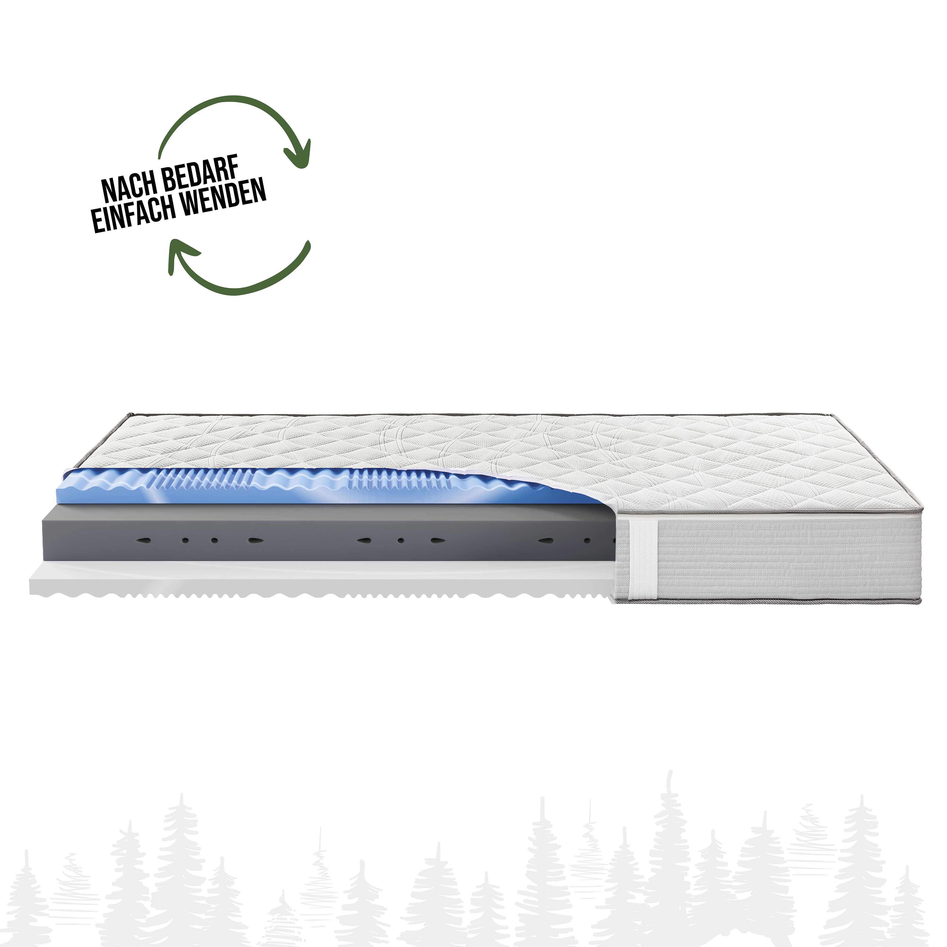 Kernaufbau | 7-Zonen-Wendematratze aus Kaltschaum und druckentlastenden Gelschaum |