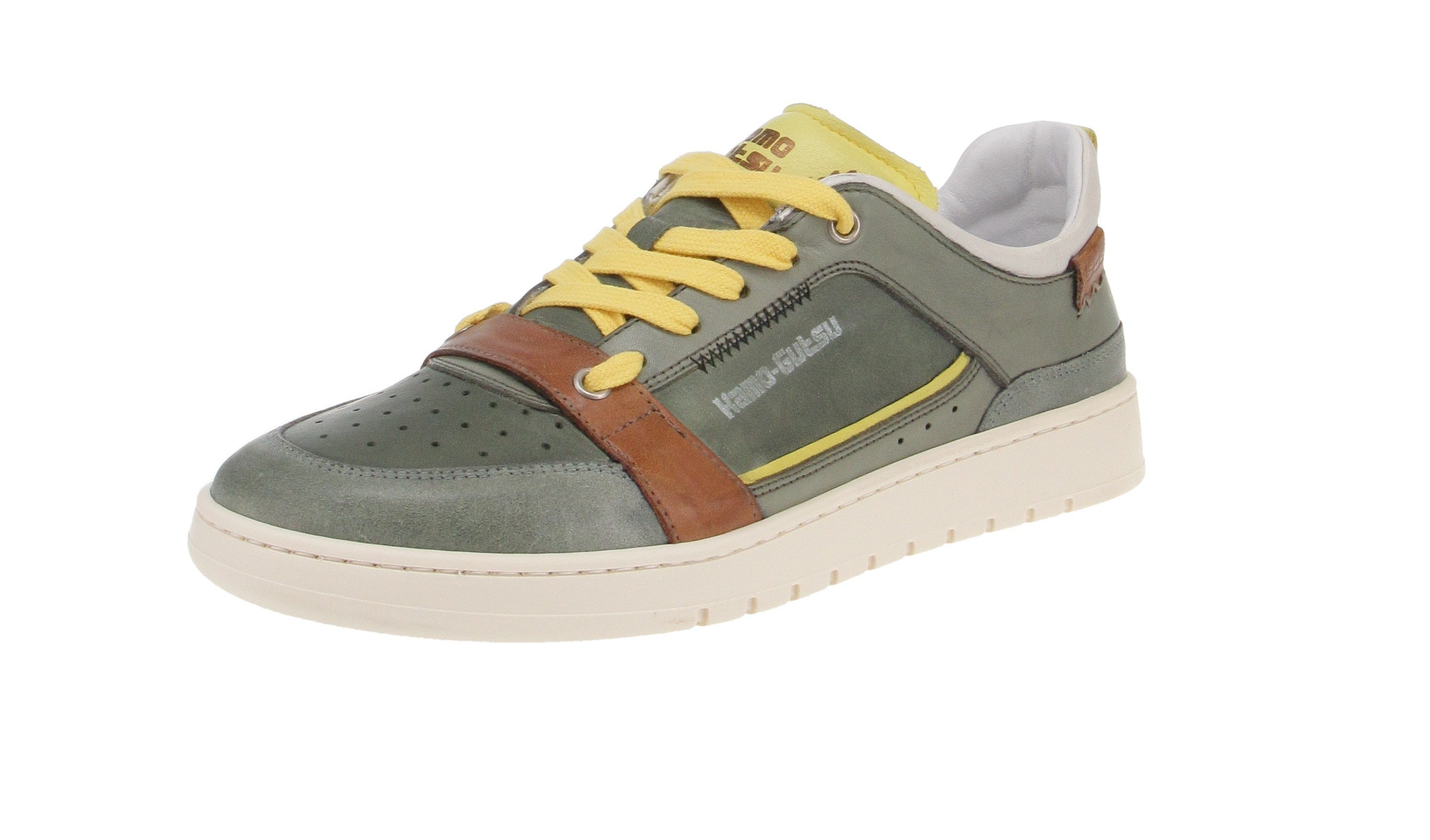 Dieser Sneaker von Kamo-Gutsu ist der perfekte Schuh für alle Retro-Liebhaber. Der Retro-Touch wird vor allem durch die Silhouette des Sneakers, den perforierten Vorderschuh, die kontrastierenden Farbakzente und die Logo-Details verliehen.