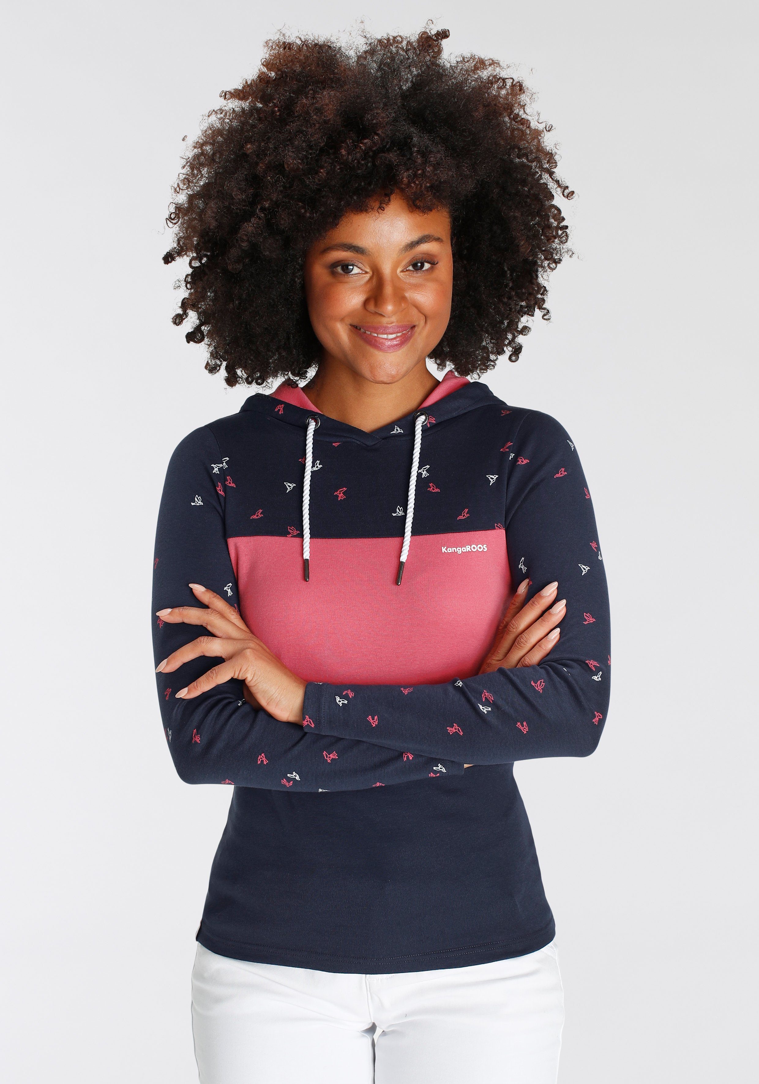 Neue Outfits lassen sich mit dem Kapuzenshirt von KangaROOS ganz leicht kombinieren. Denn das Shirt hat durch die Colourblocking-Optik einen markanten und kontrastreichen Look, der dein Outfit aufwertet. Beim trendigen Colorblocking werden verschiedene Farben verwendet, die einen farbenfrohen Mix ergeben. Dieses Shirt ist hüftbedeckend sowie sehr figurbetont geschnitten, sodass deine Silhouette schön in Szene gesetzt wird.